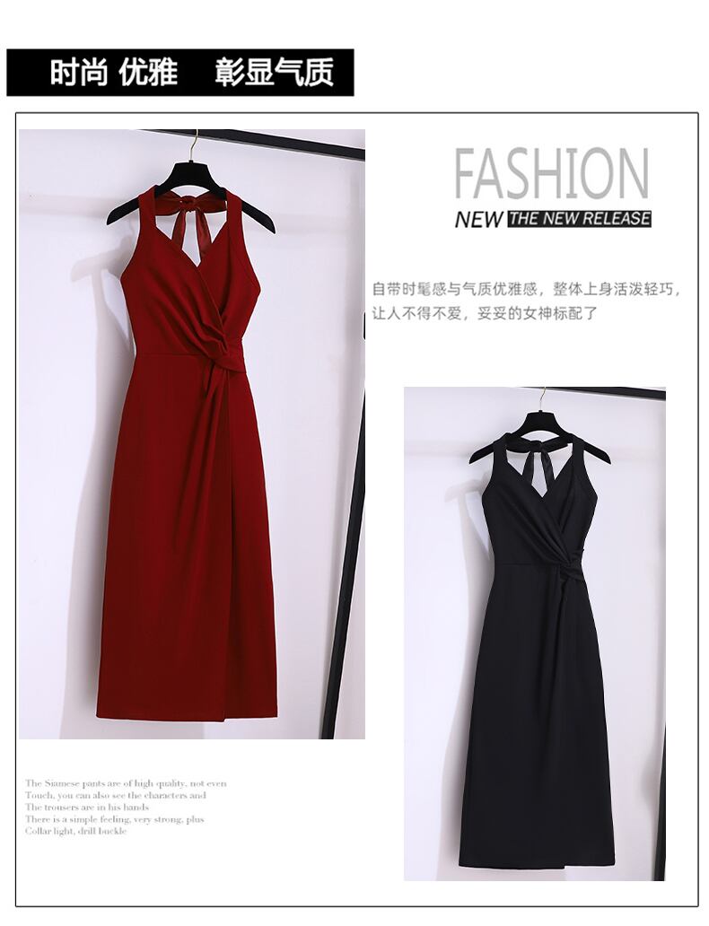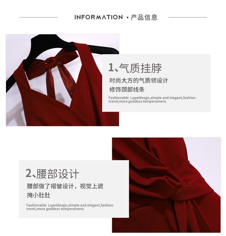 大きいサイズの婦人服 2023 夏の新しいファット シスター ファッション ハンギング ネック デザインの薄い V ネック A ライン サスペンダー スカート女性 大きめサイズ サマー 夏物 Vネック Aライン 8884175701082600