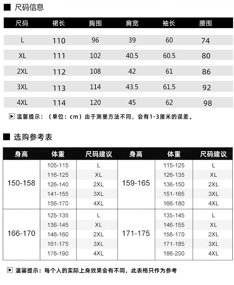 体重表記について、中国は2倍の体重で表記されています。例えば、Lサイズ→推奨90kg〜116kgであれば、45~58kg程度の方が対象になります。海外サイトを使用する方はお気を付けください。