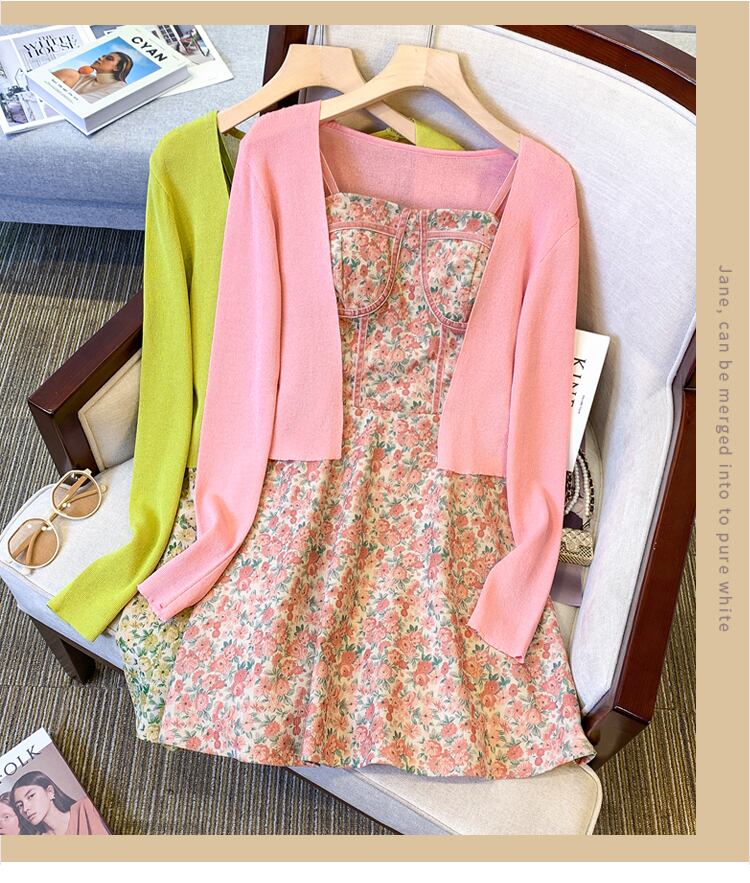 大きいサイズの婦人服 2023 ファット シスター夏の新しいファッション スリム ニット カーディガン花柄サスペンダー スカート 2 点セット 大きめサイズ サマー 夏物 8884153445119552