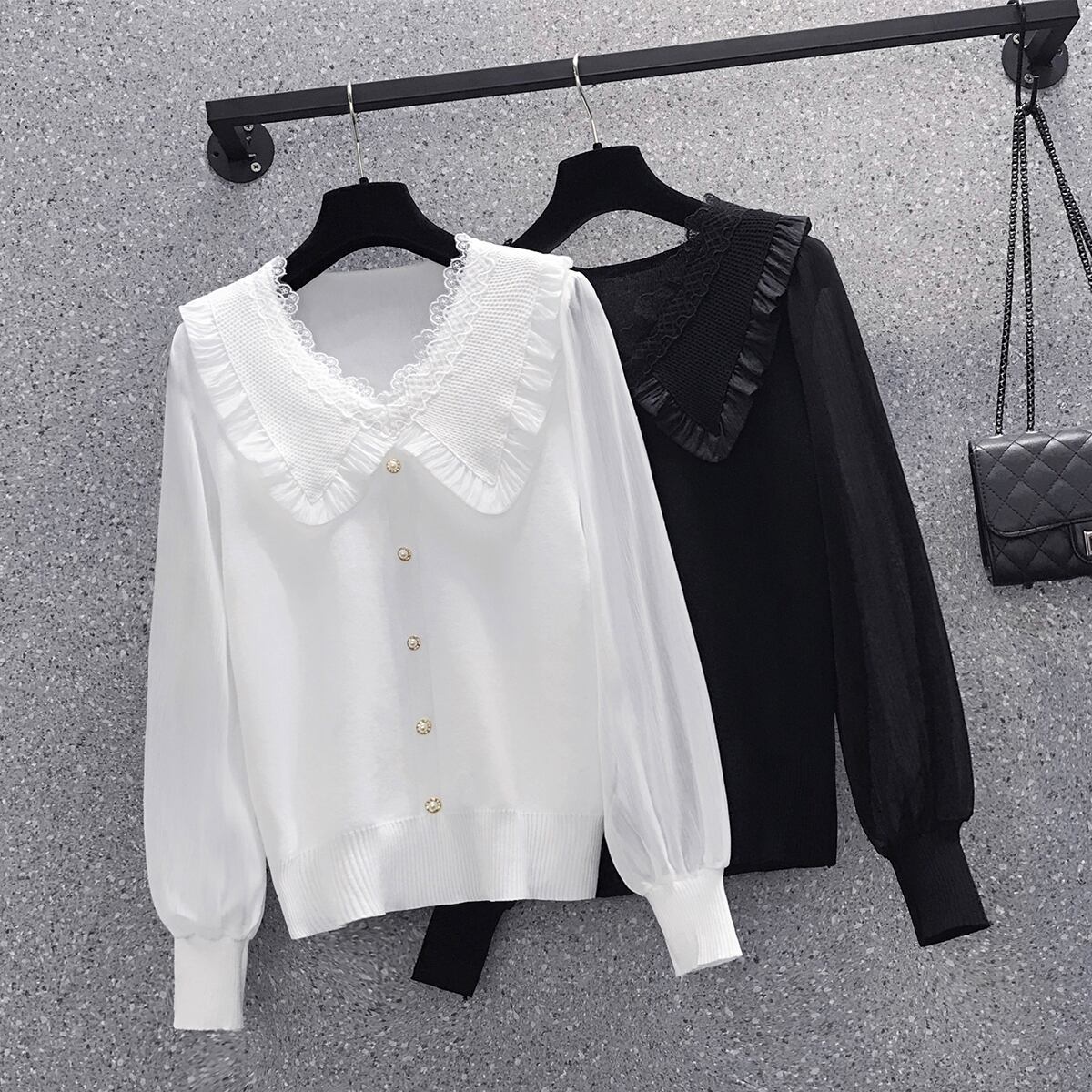 プラスサイズの婦人服 2023 春服脂肪姉妹新しいフリル シフォン ステッチ ニット セーター長袖プルオーバー トップ女性 ロング ラッフル 大きめサイズ スプリング 春物 8884148230336126