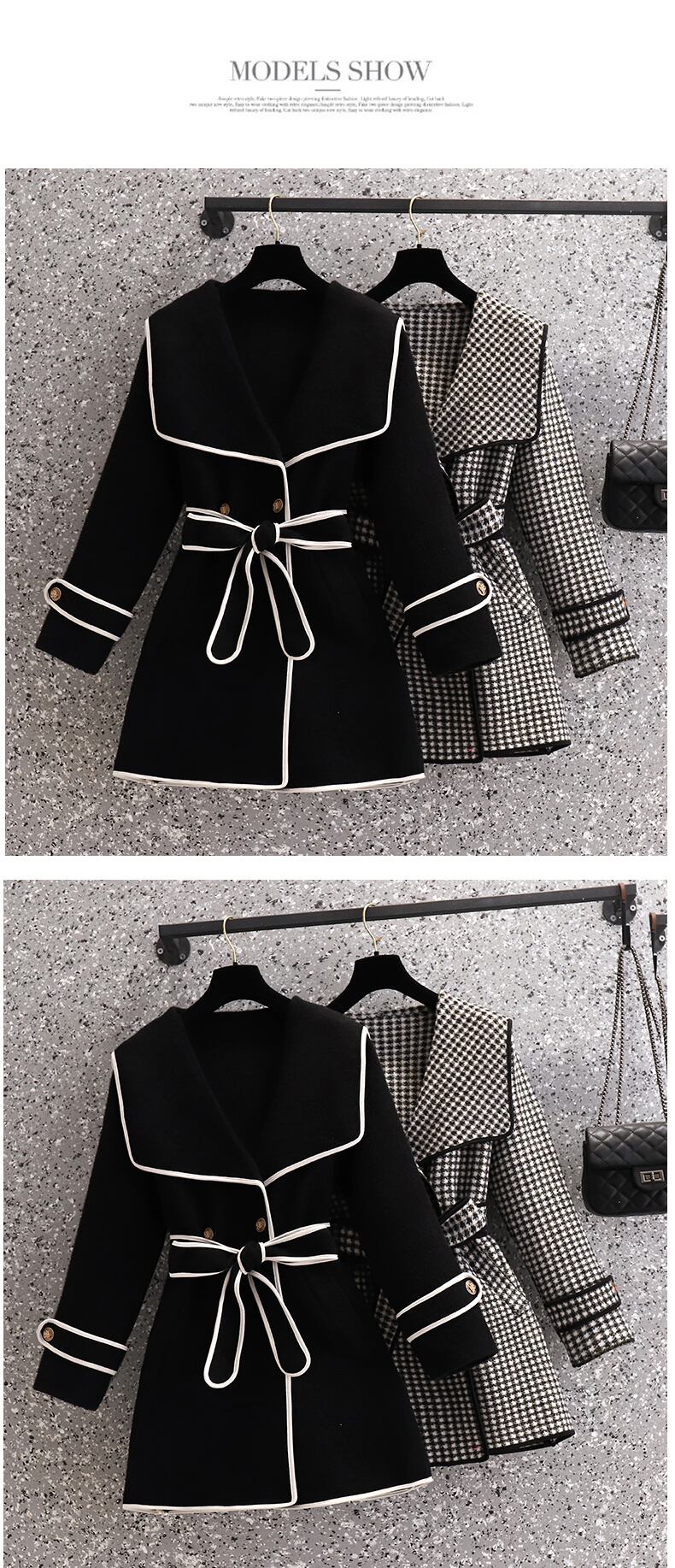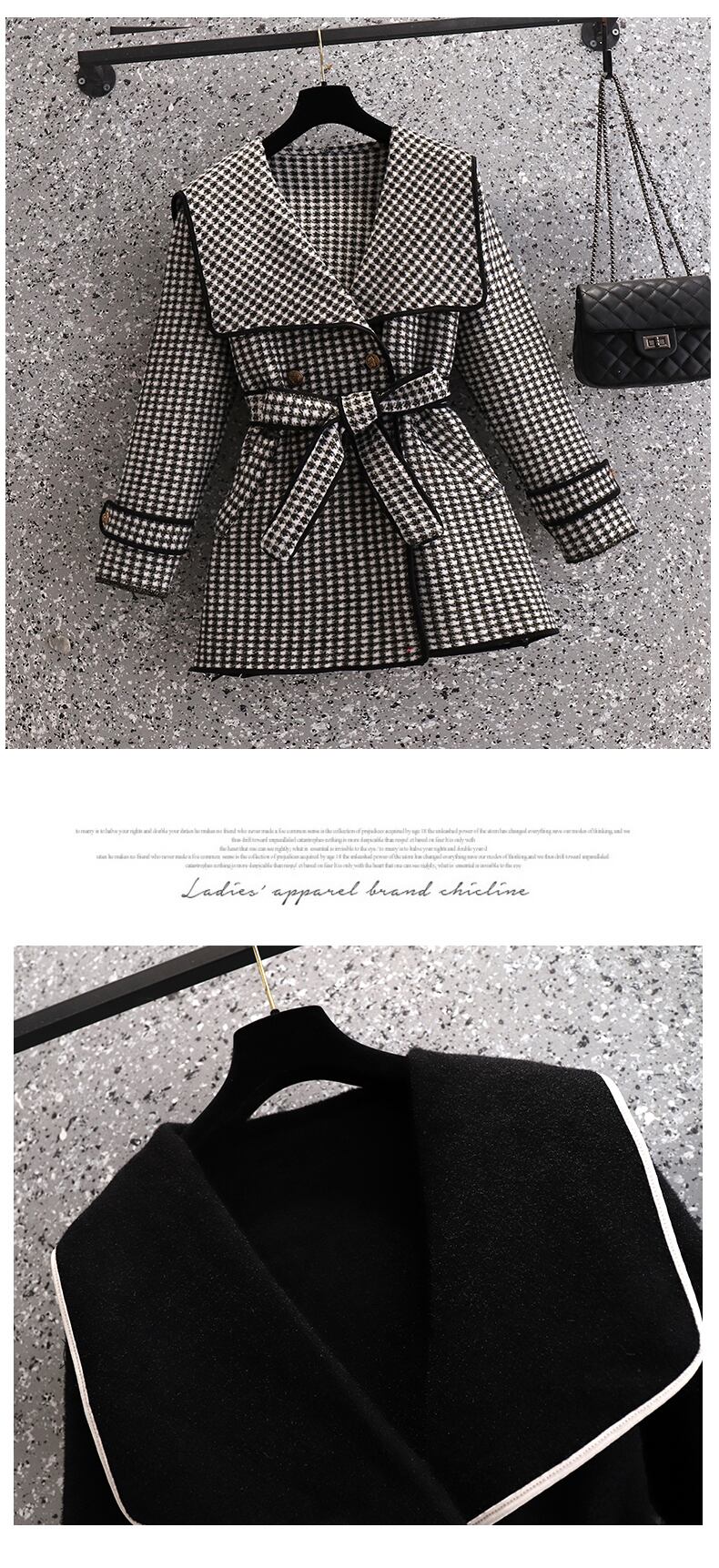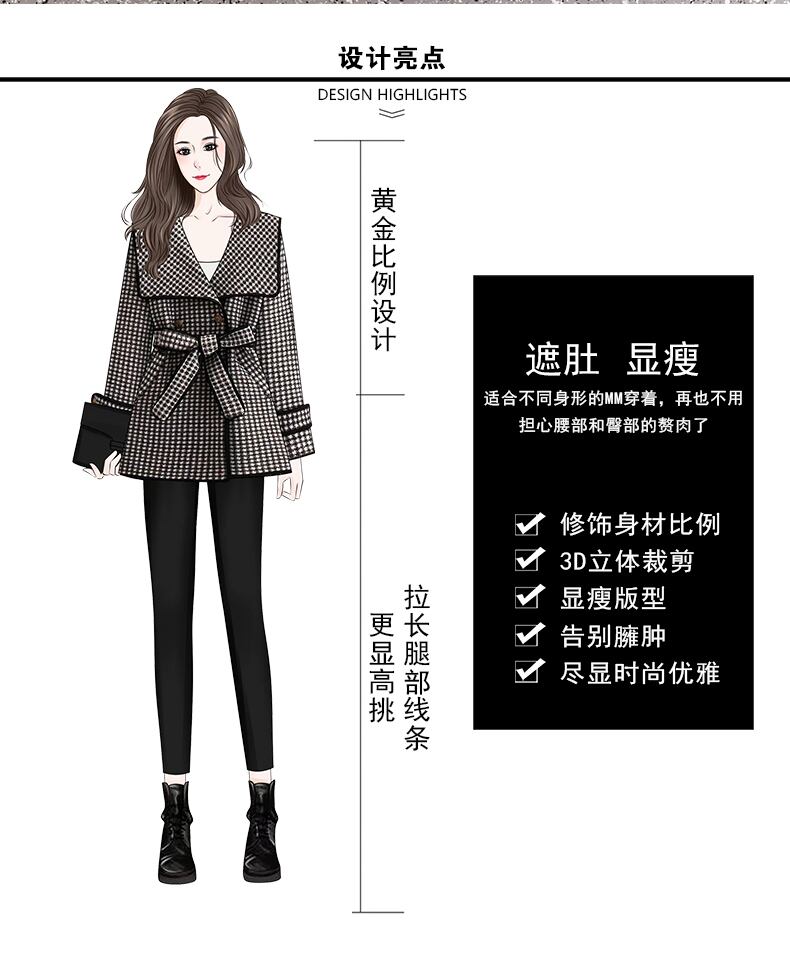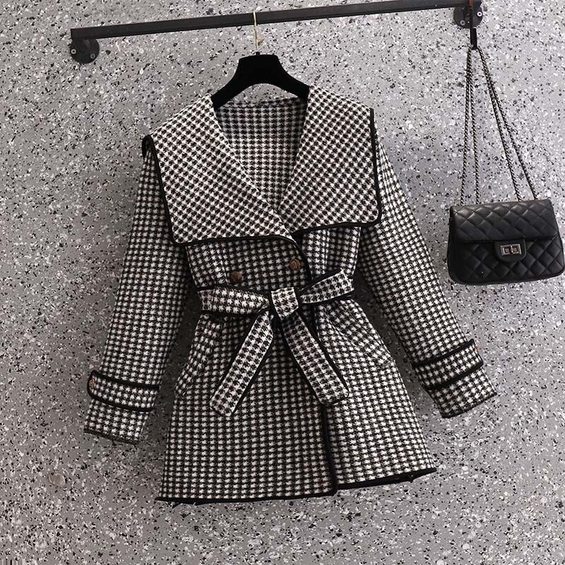 プラスサイズの婦人服2023トレンディな女性の春の新しい太った姉妹の千鳥格子の気質のスリムなウエストと薄い中丈のウールのコート 大きめサイズ スプリング 春物 8884156139510482
