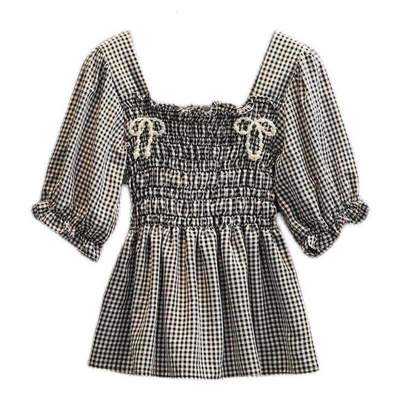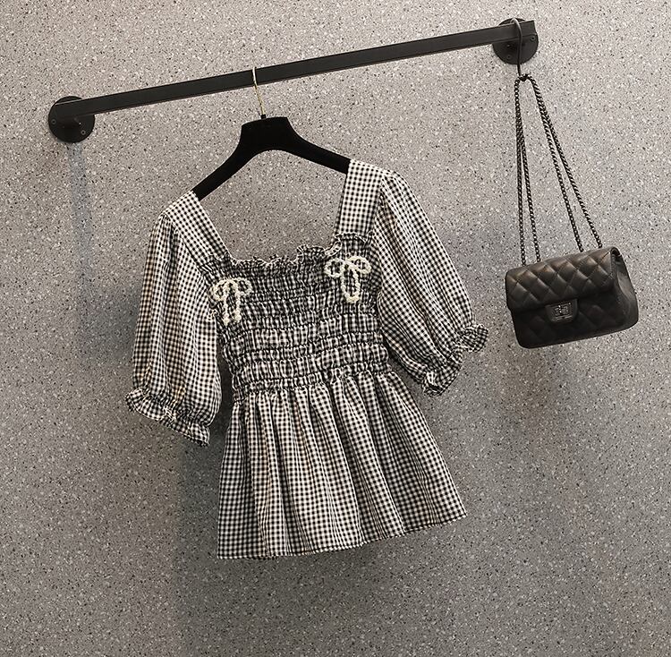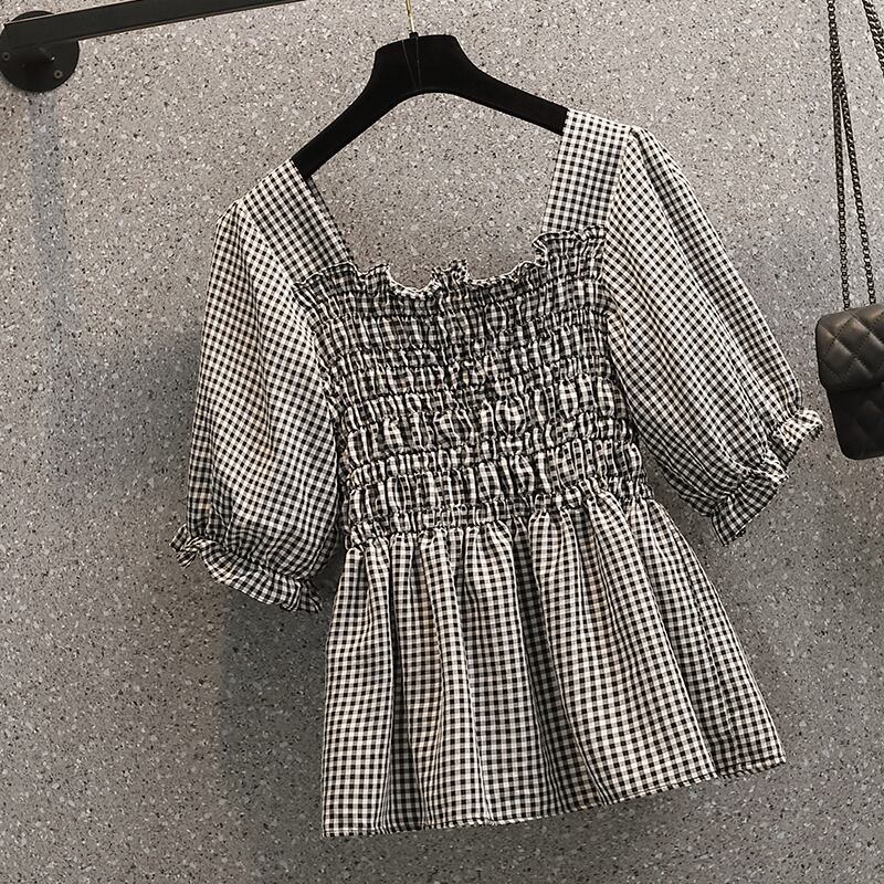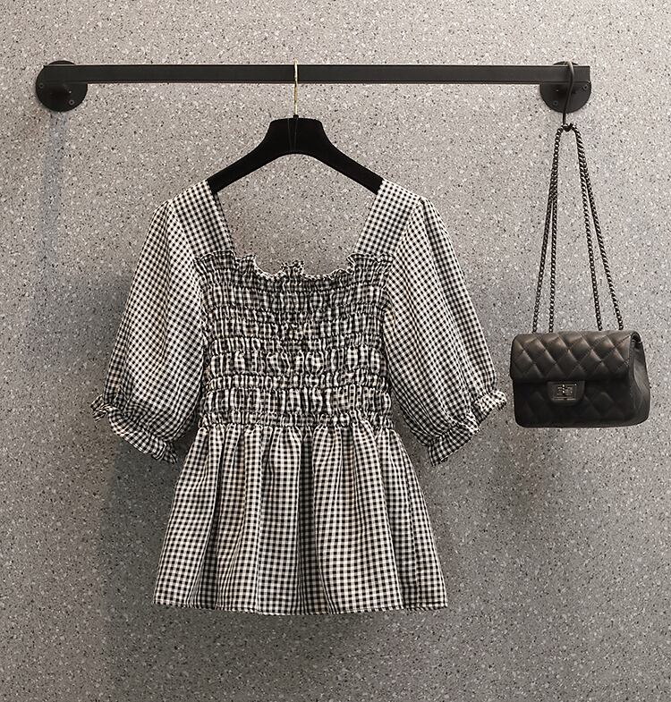 プラスサイズの婦人服 2023 トレンディな女性の夏の新しいファットシスターファッショナブルなレトロなスクエアカラー半袖人形シャツパフスリーブシャツ 大きめサイズ サマー 夏物 スクウェア 8884126841684060