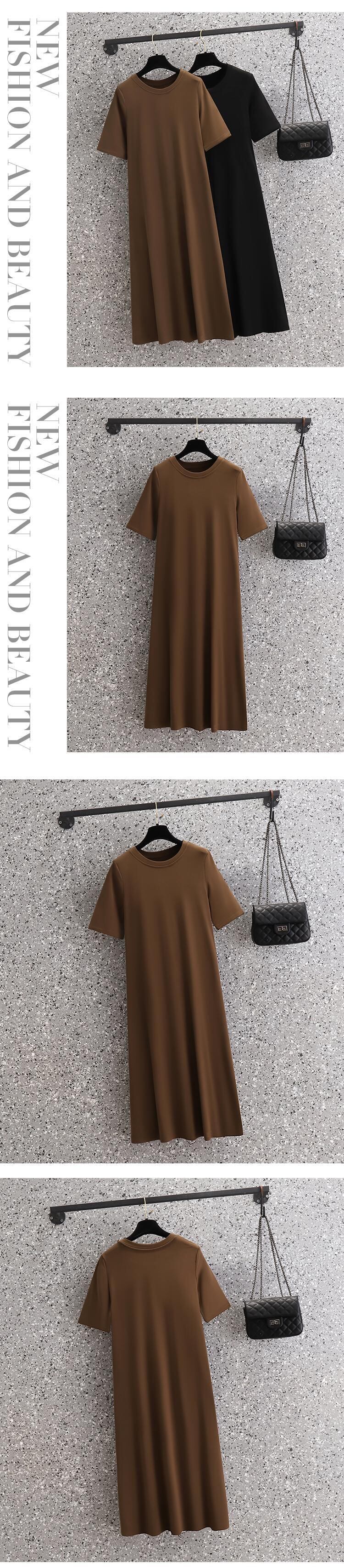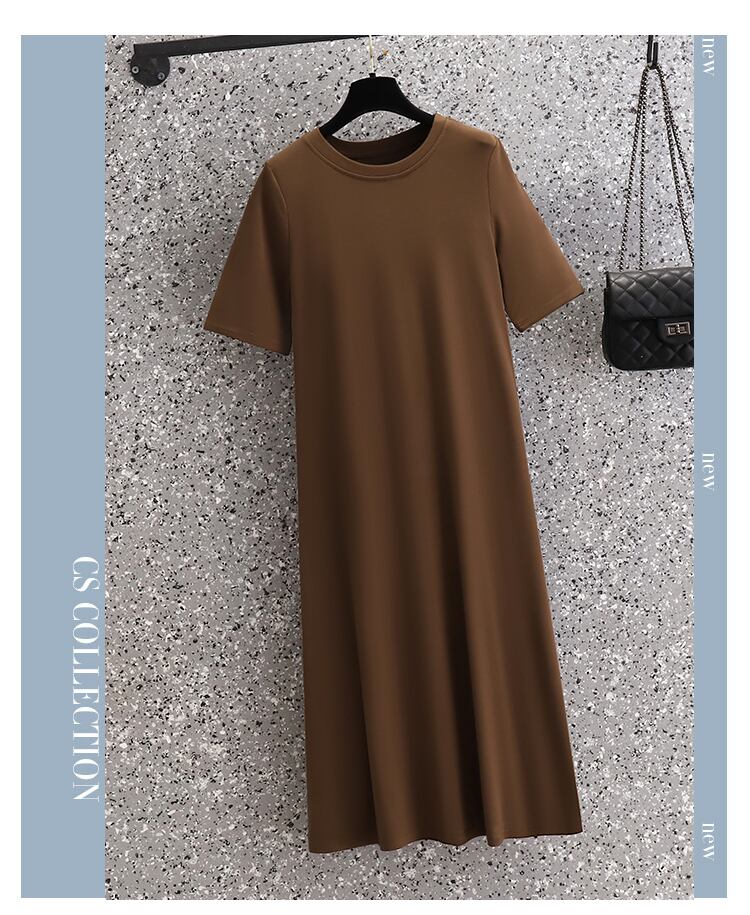 プラスサイズの婦人服 2023 ファットシスター夏の新しいスタイルの気質無地ボトムススカートスリム半袖ドレス 大きめサイズ サマー 夏物 ソリッドカラー 8884185320536745