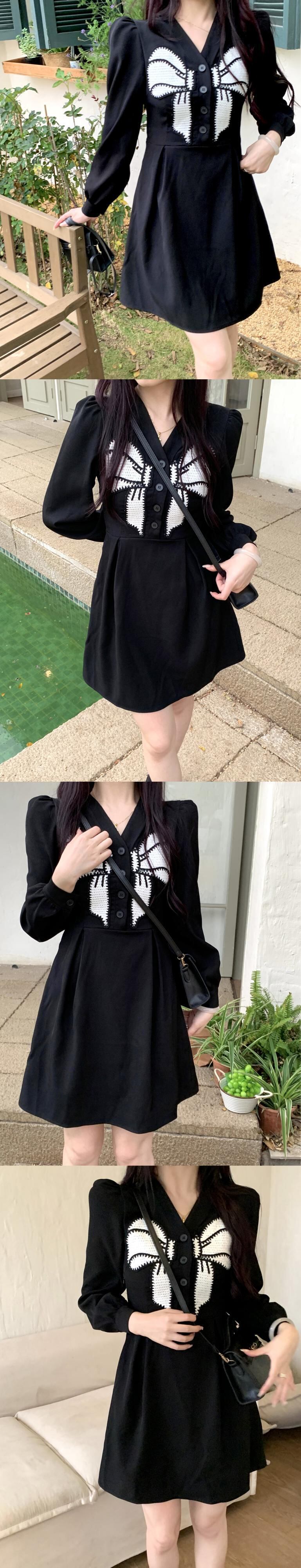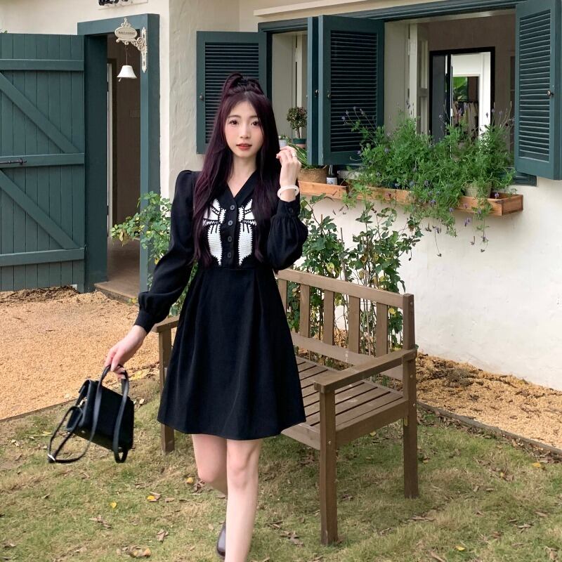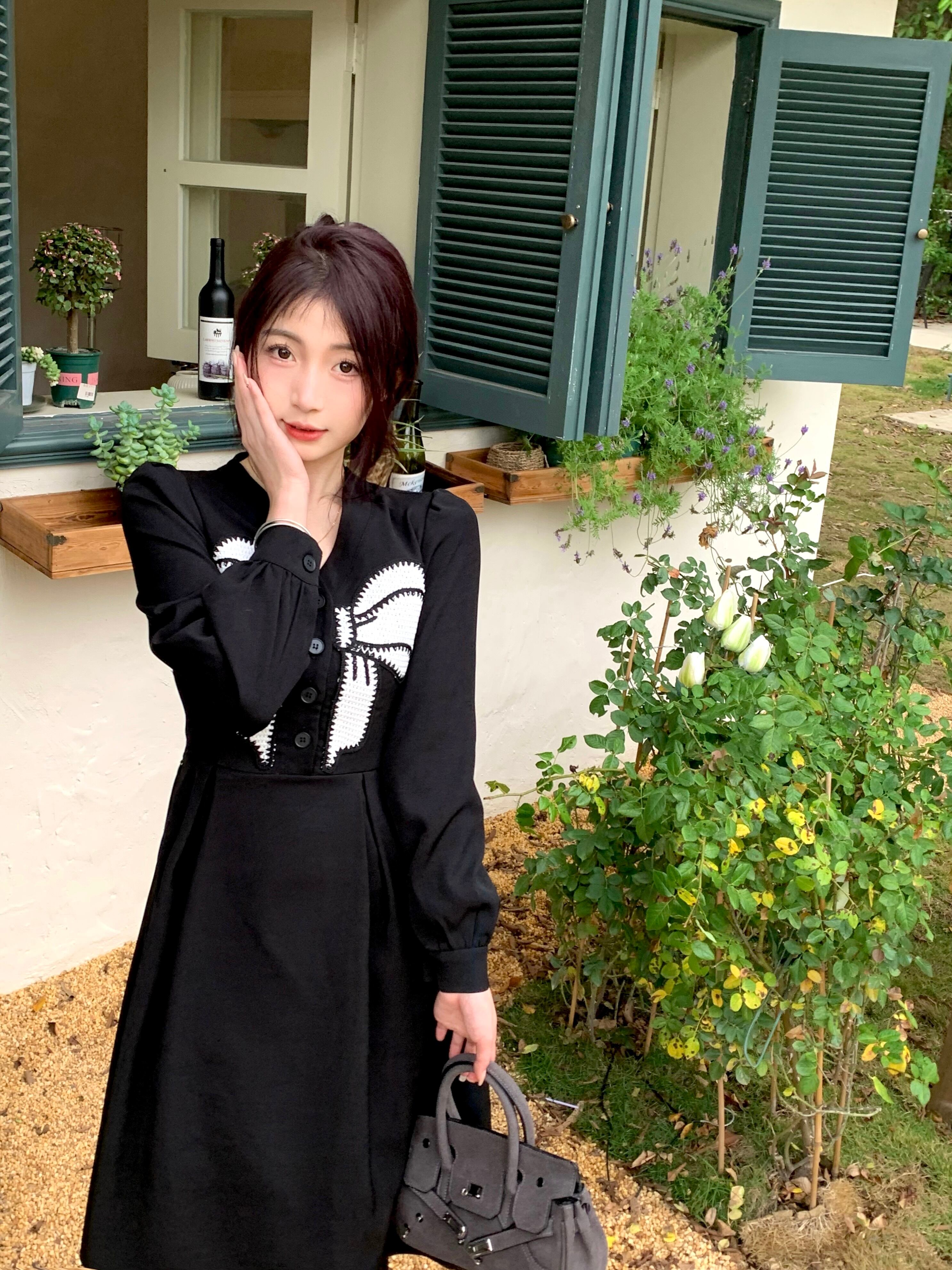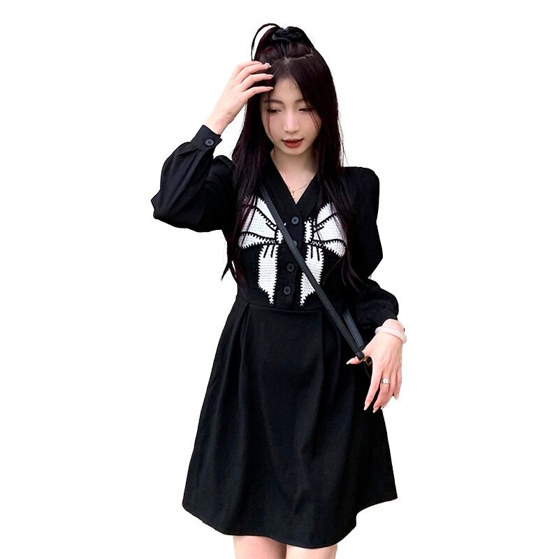 大きいサイズの婦人服 2023 春服ファットシスターズ新スタイル eign スタイル薄いちょう結びリトルブラックドレス v ネックドレス女性 リボン 大きめサイズ スプリング 春物 Vネック 8884192418868093