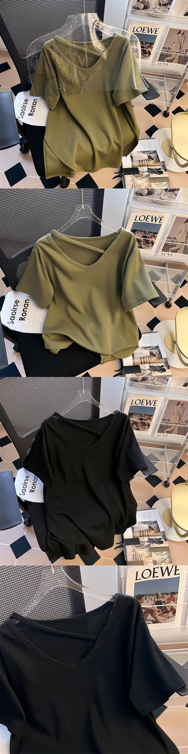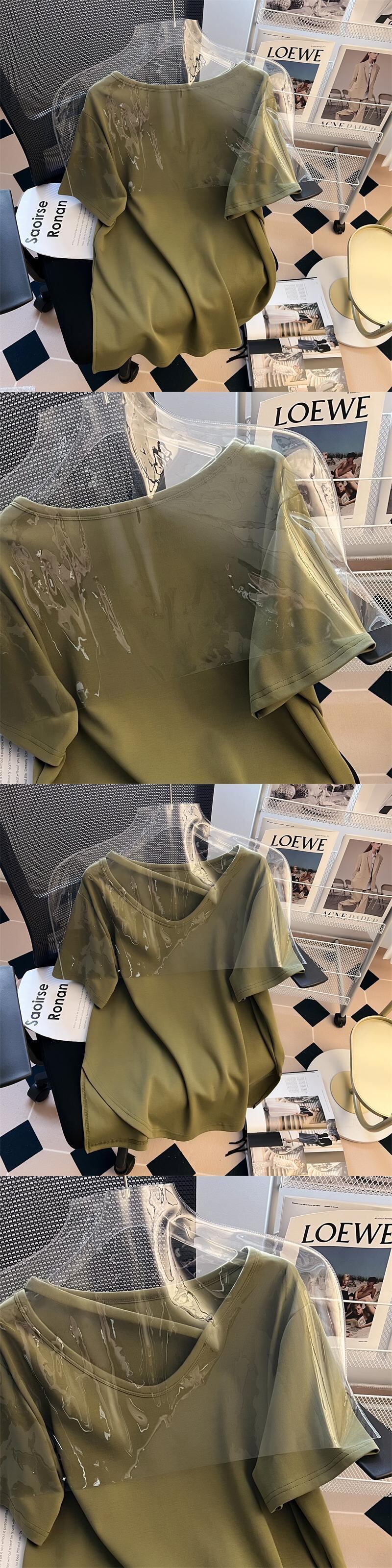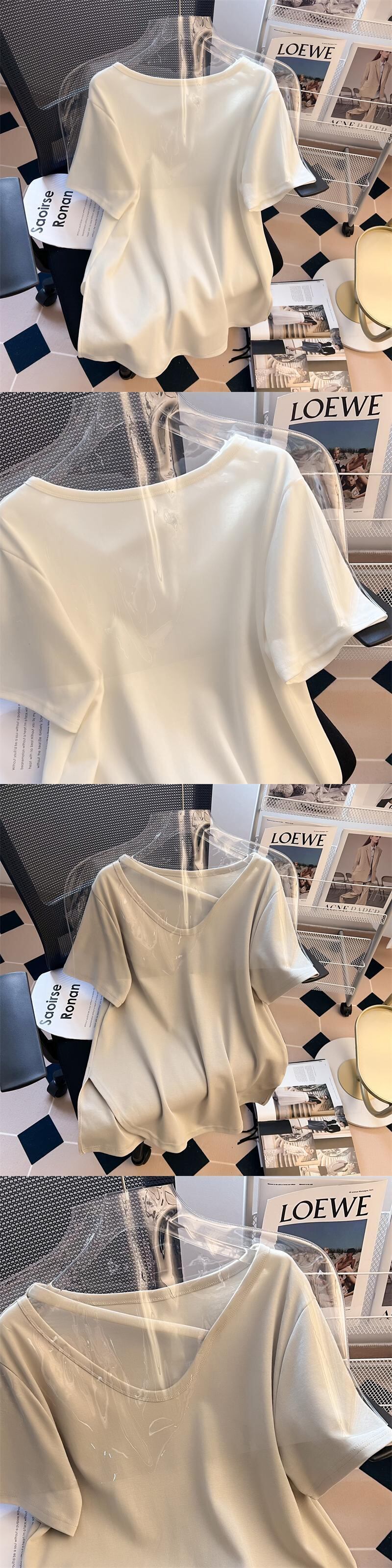 プラスサイズの婦人服 2023 夏の新しいファットシスターファッション全試合半袖デザインセンス無地気質 Tシャツ女性 大きめサイズ サマー 夏物 ソリッドカラー 8884129729128326