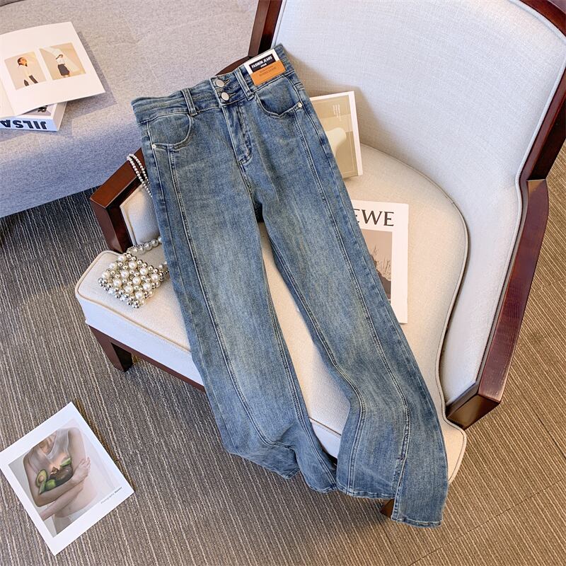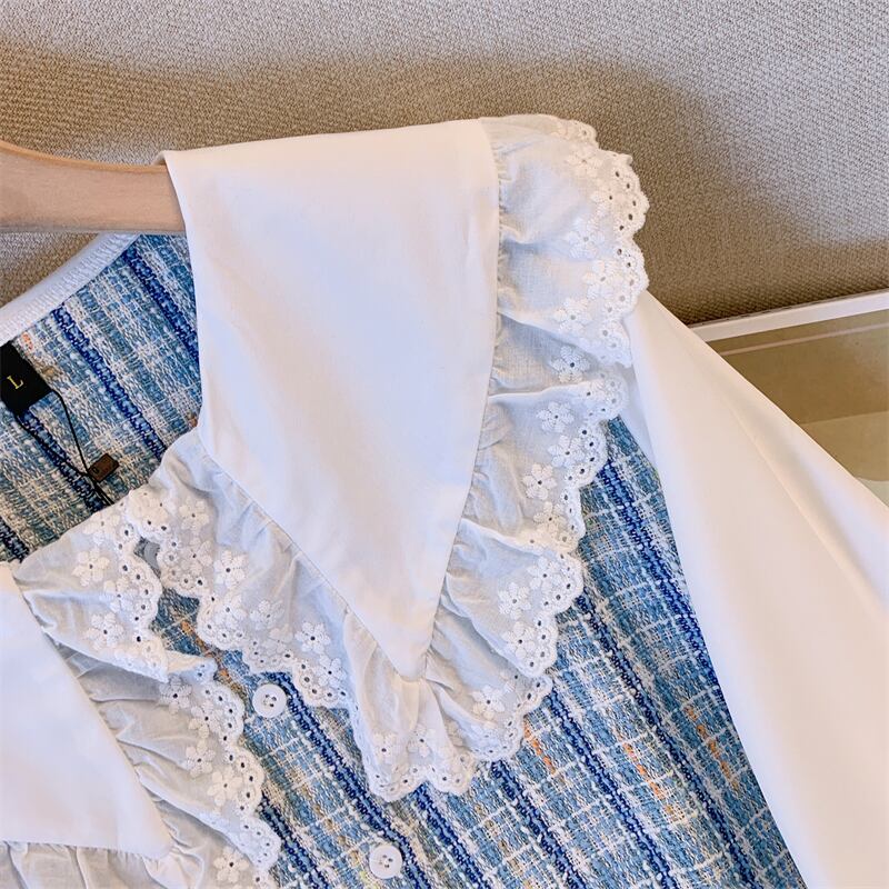 プラスサイズの婦人服 2023 春服脂肪姉妹新しい eign スタイルスプライシング人形の襟シャツジーンズツーピーススーツ 大きめサイズ スプリング 春物 8884167553984089