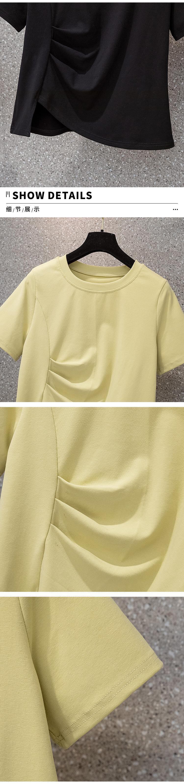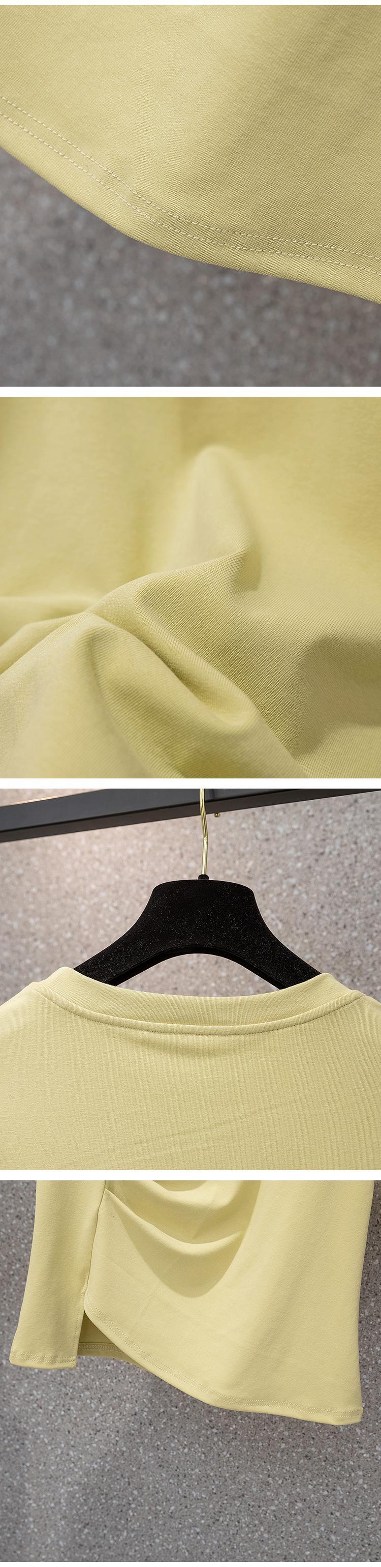 大きいサイズの婦人服 2023 夏の新しいファット シスター ファッション不規則な薄いデザイン ラウンド ネック半袖 T シャツ 大きめサイズ サマー 夏物 Oネック Tシャツ 8884152679989202