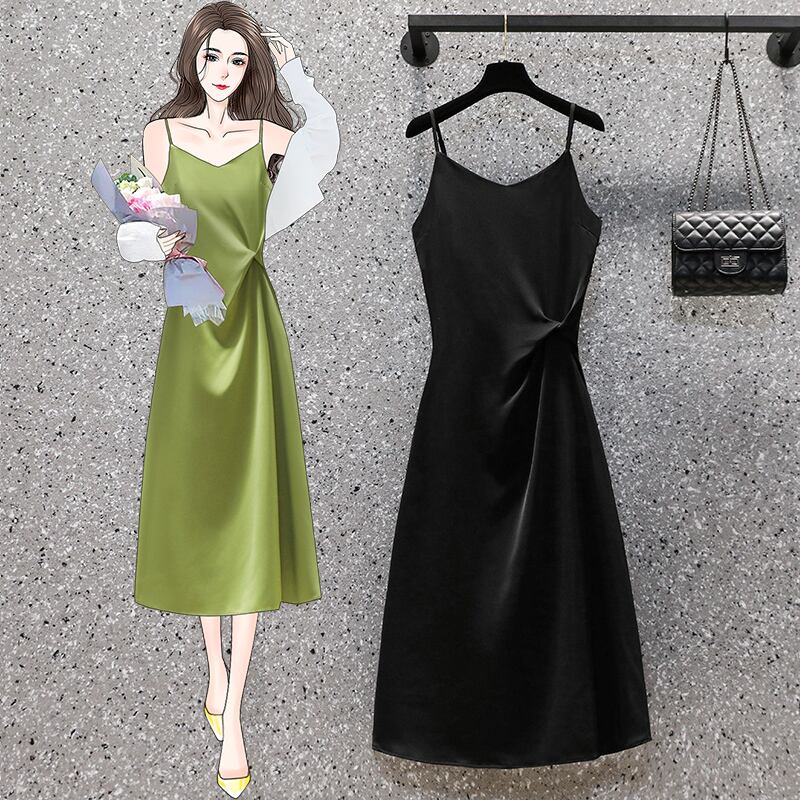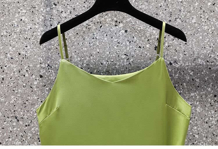 プラスサイズの婦人服 2023 ファットシスター夏の新ファッションウエスト底入れスカートアボカドグリーンサスペンダードレス 大きめサイズ サマー 夏物 8884136132049666