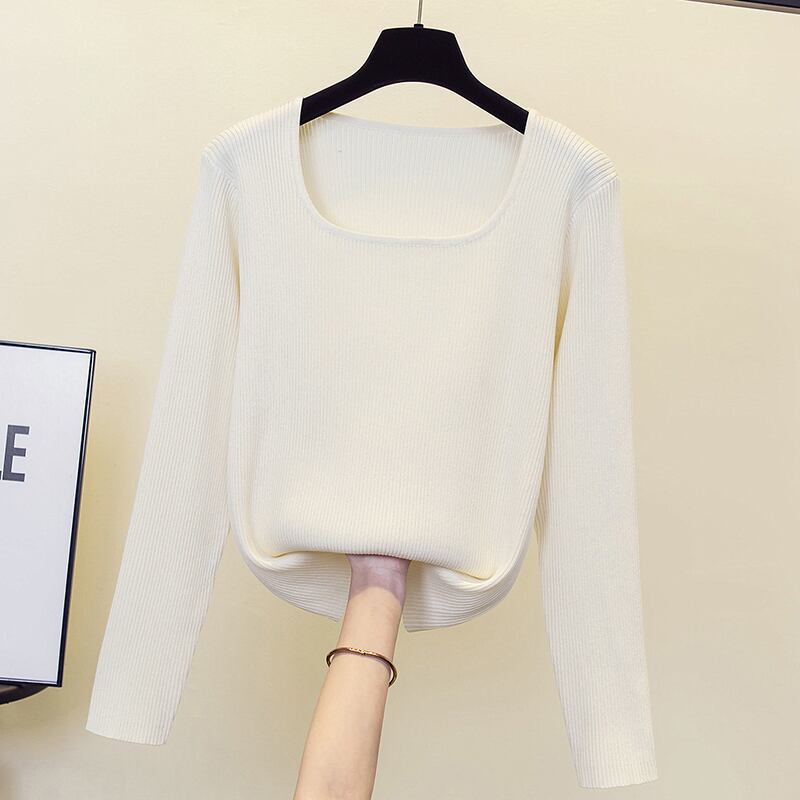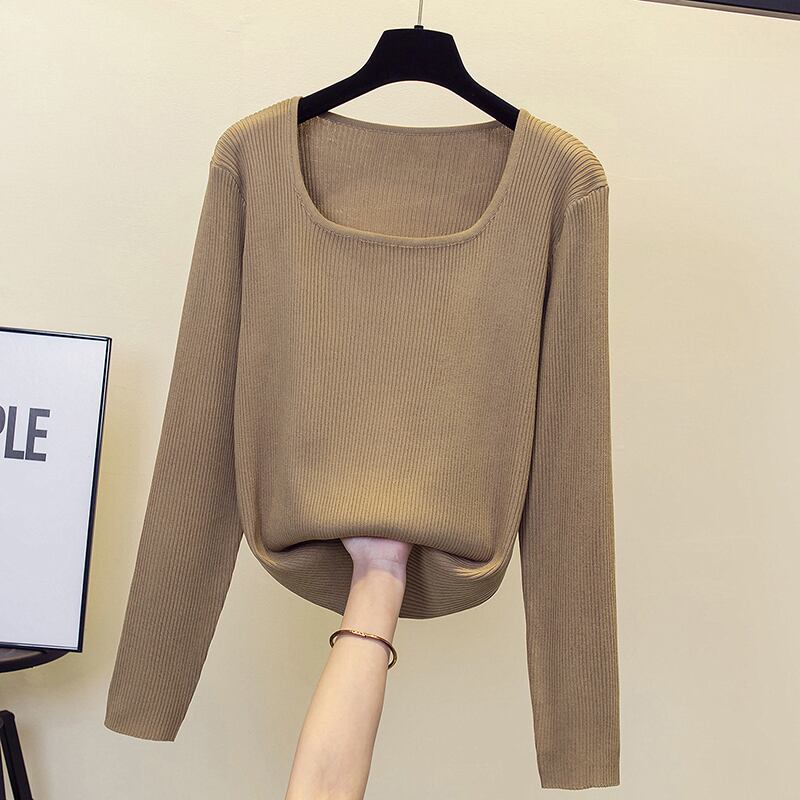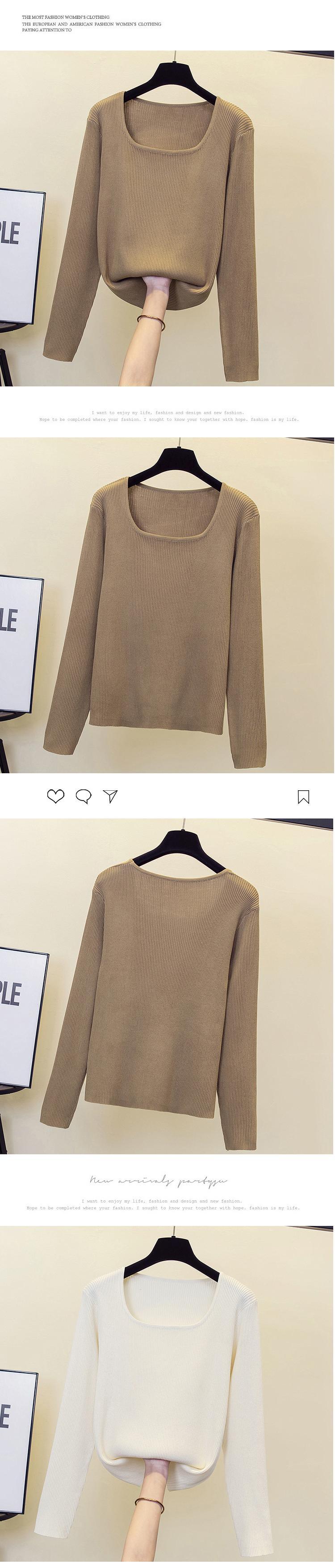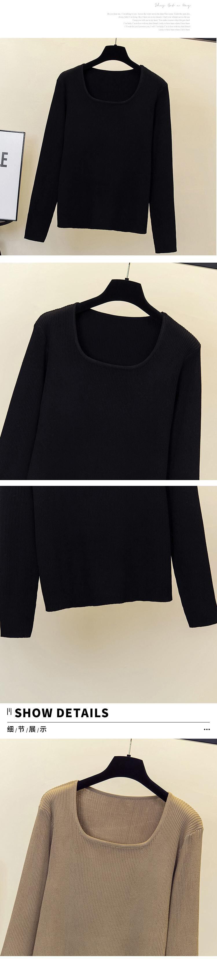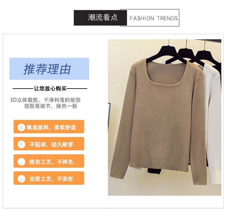 プラスサイズの婦人服2023トレンディな女性の春の新しいファットシスターeignスタイルのスクエアカラーのニットセータートップシンプルなオールマッチボトムシャツ 大きめサイズ スプリング 春物 スクウェア 888415282207698