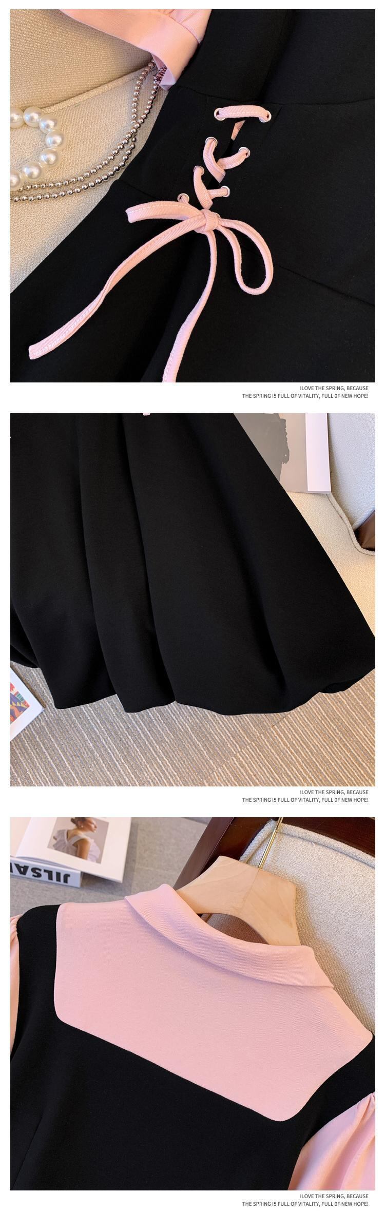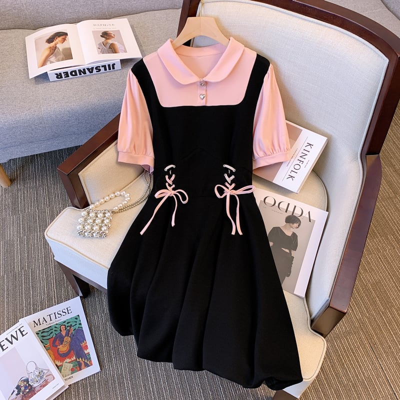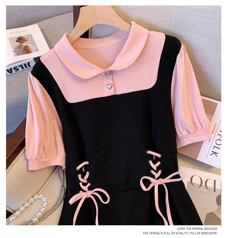 プラスサイズの婦人服 2023 夏の新しいファットシスター eign スタイルの年齢を減らすファッションコントラストカラーストラップフェイクツーピースドレス 大きめサイズ サマー 夏物 8884197031901913