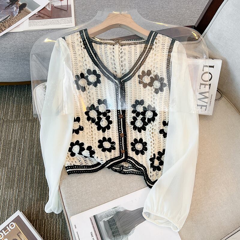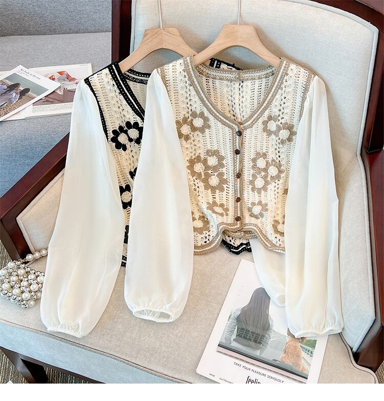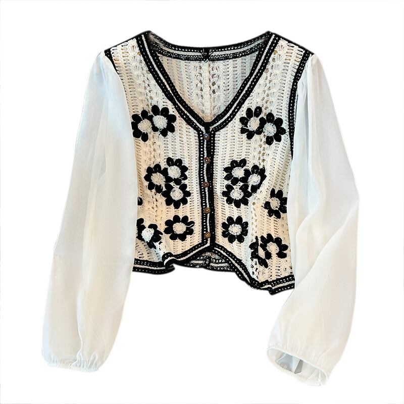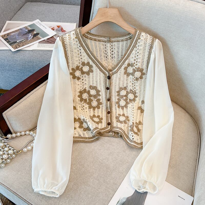 大きいサイズ 婦人服 2023 春服 ファットシスターズ 新デザイン感覚 かぎ針編み 編み物 ショート Vネック トップス レディース 大きめサイズ スプリング 春物 ステッチ 8884195582259917