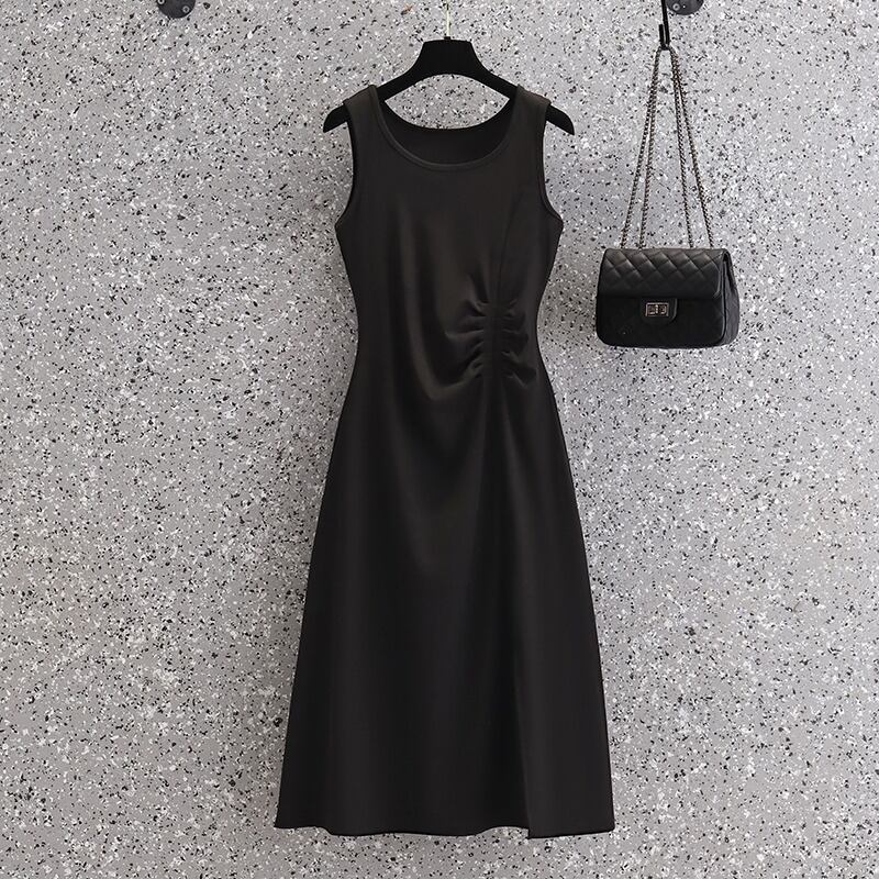 プラスサイズの婦人服 2023 ファットシスター夏の新ファッション年齢引き下げサスペンダースカートスリムノースリーブベストドレス 大きめサイズ サマー 夏物 8884170287712593