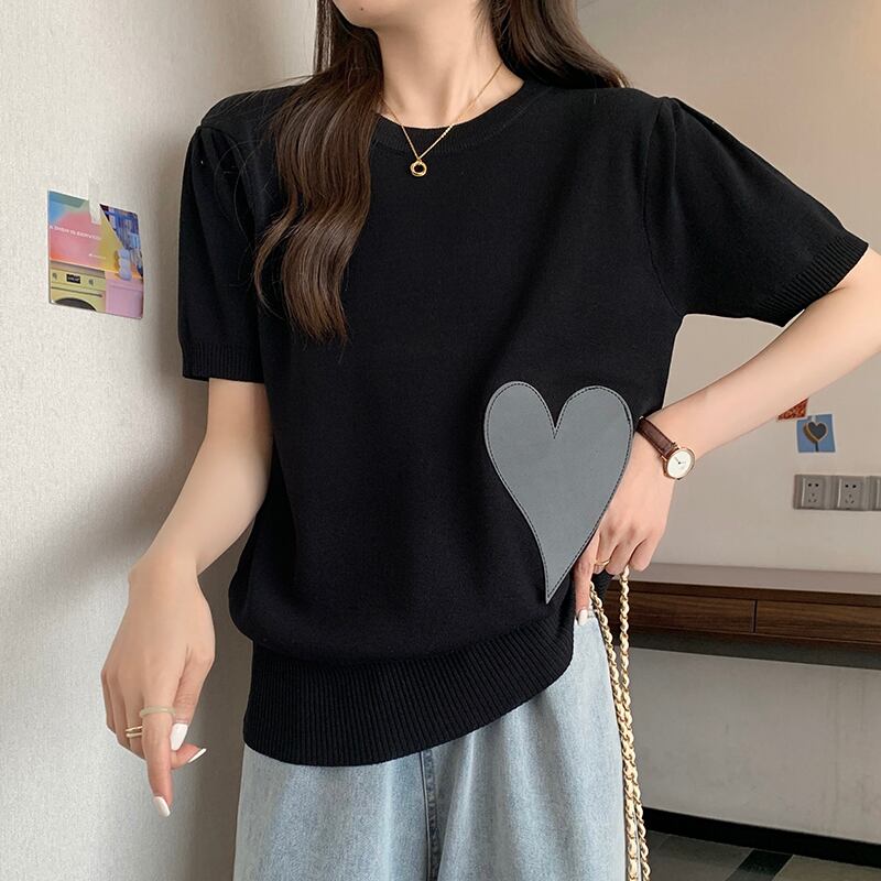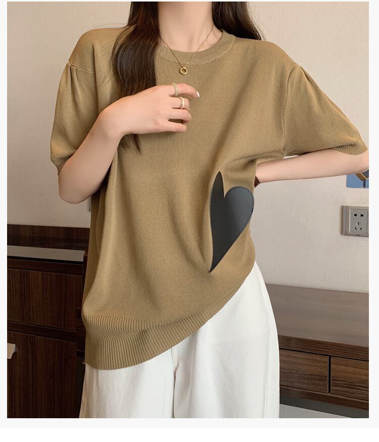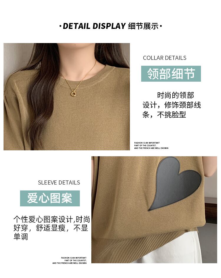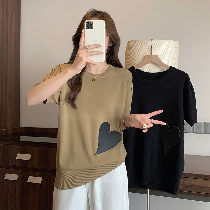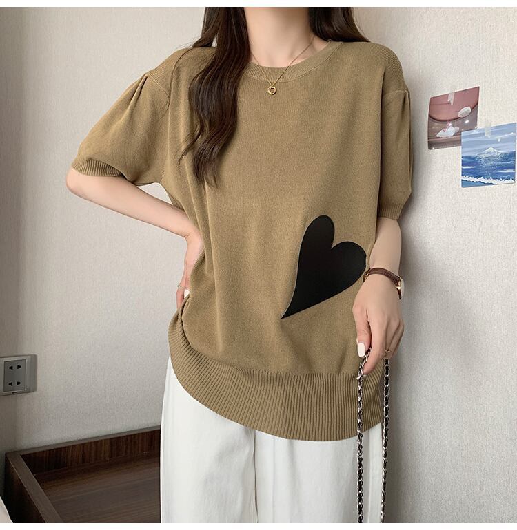 大きいサイズの婦人服 2023 トレンディな女性の夏の新しいファット シスター ウエスタン スタイル ニット半袖ルーズ スリム アイス シルク オールマッチ Tシャツ 大きめサイズ サマー 夏物 8884129601717851