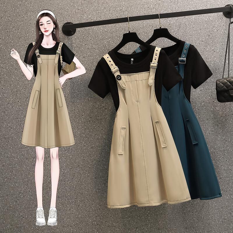 プラスサイズの婦人服 2023 夏の新しい太った姉妹の気質ウエストウエストフェイクツーピースデザインのシックなドレスの女性 大きめサイズ サマー 夏物 8884111208939582
