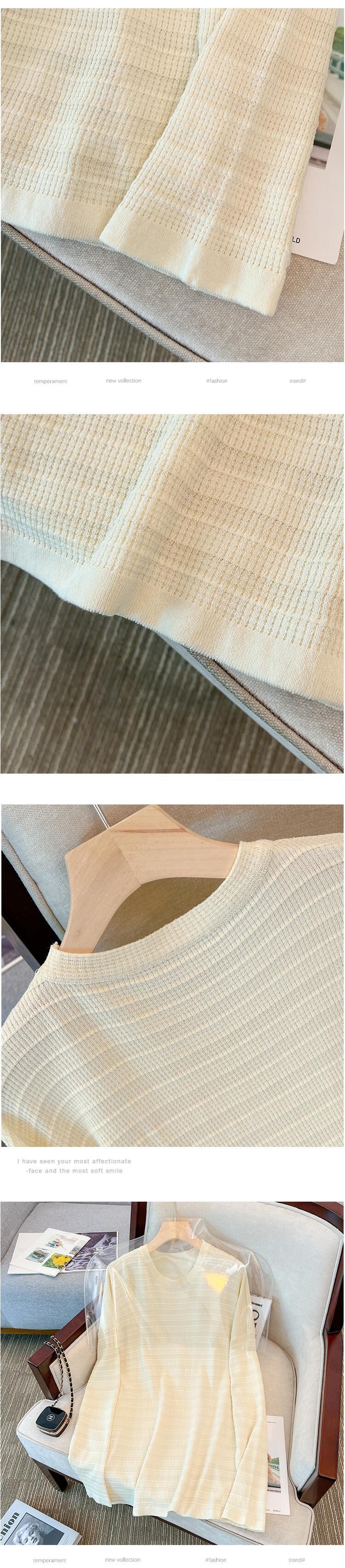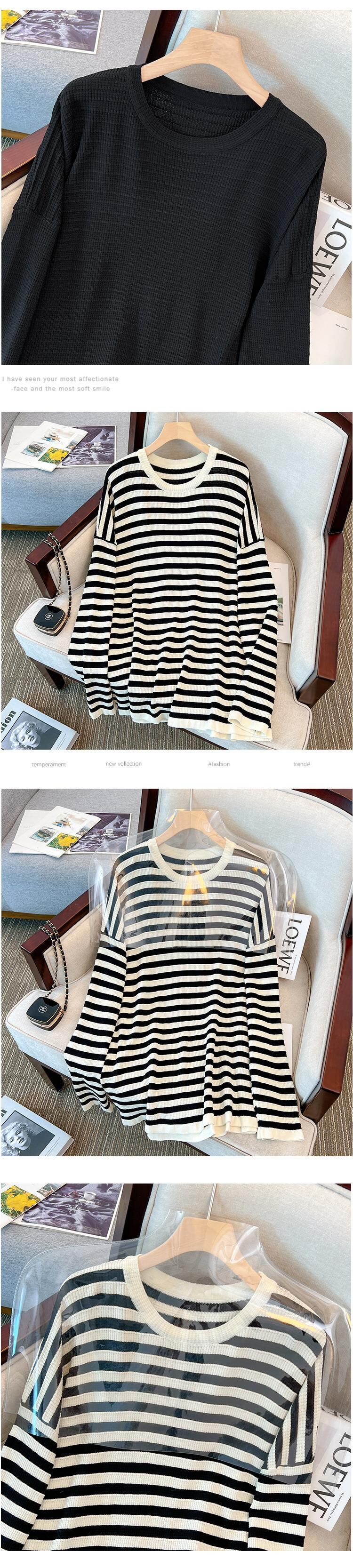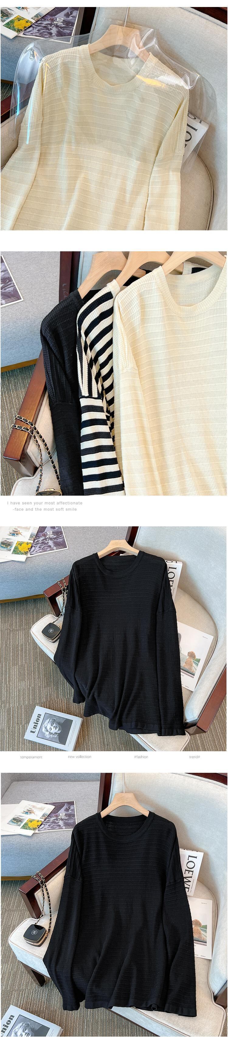 プラスサイズの婦人服 2023 春服ファットシスターズ新ストライプオールマッチニットルーズ底入れシャツ長袖トップ女性 ロング 大きめサイズ スプリング 春物 8884146690323791