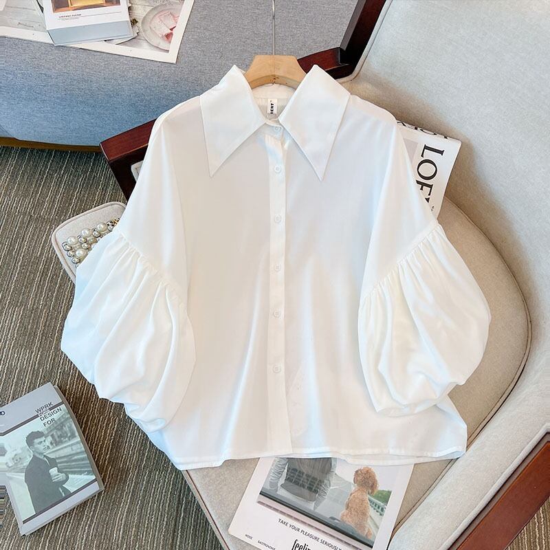 プラスサイズの婦人服 2023 夏の新しいファットシスター eign スタイル年齢削減ルーズシックなランタンスリーブカジュアルシャツ女性 大きめサイズ サマー 夏物 8884170324633855