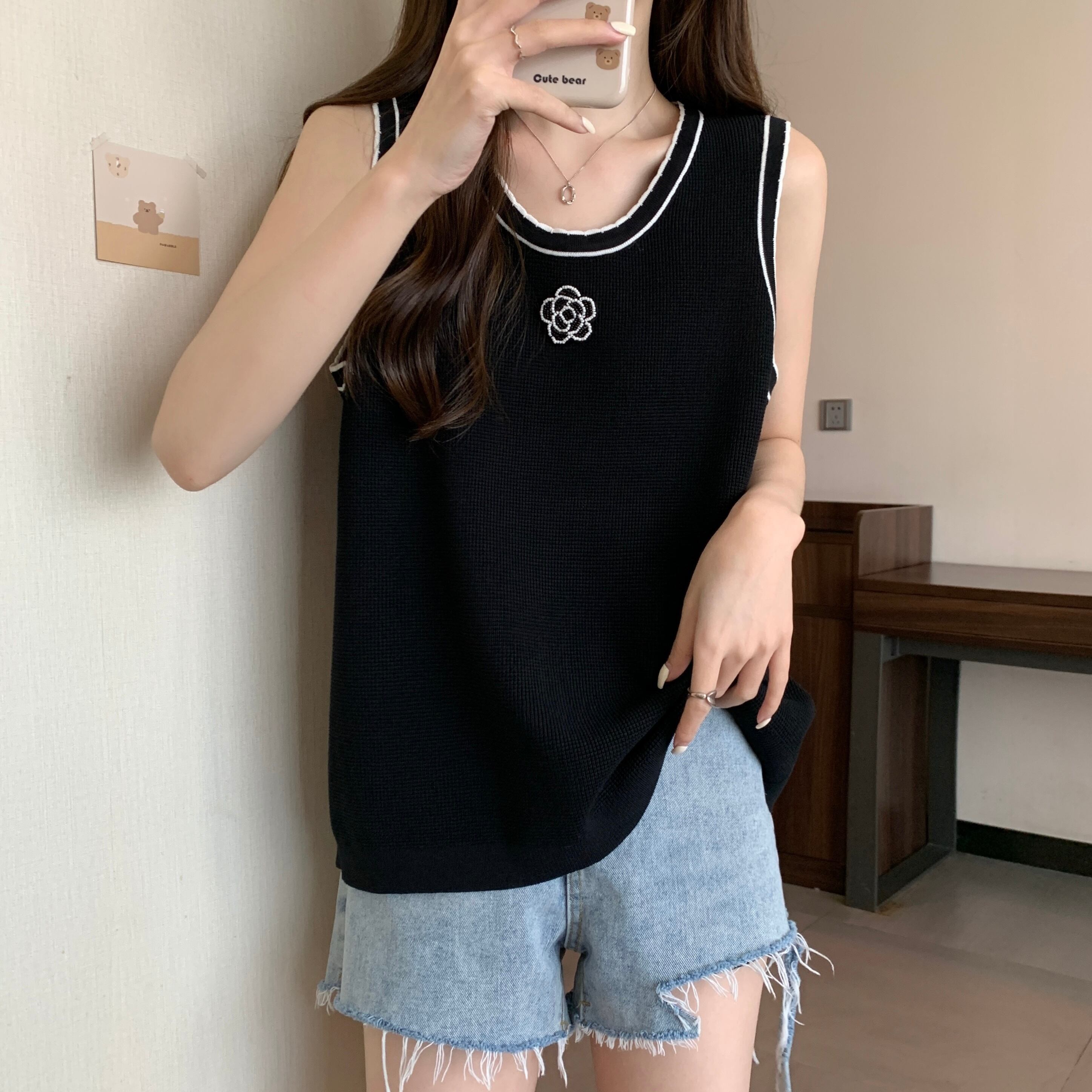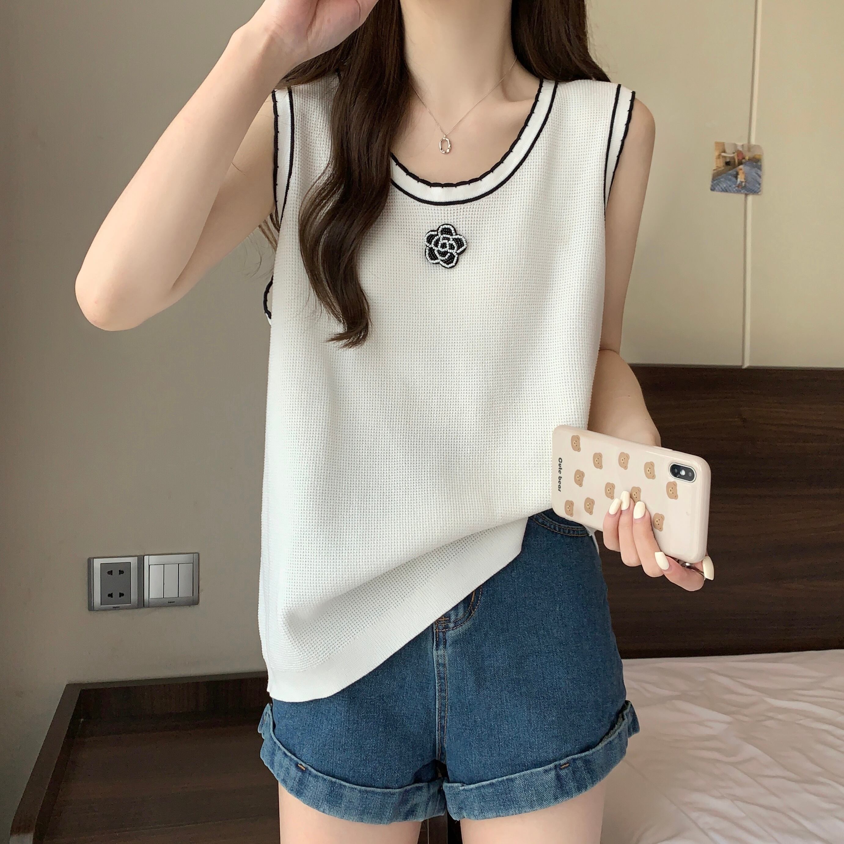 プラスサイズの婦人服 2023 ファットシスター夏の新しいファッションの色のコントラストボトムストップとサスペンダーニットベスト 大きめサイズ サマー 夏物 8884163277190185
