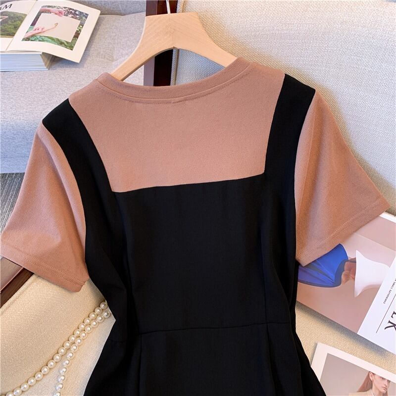 大きいサイズの婦人服 2023 トレンディな女性の夏の新しいスタイルの太った姉妹オールマッチファッションファッションカバー肉と薄い偽のツーピースの eign スタイルのドレス 大きめサイズ サマー 夏物 8884157278003522
