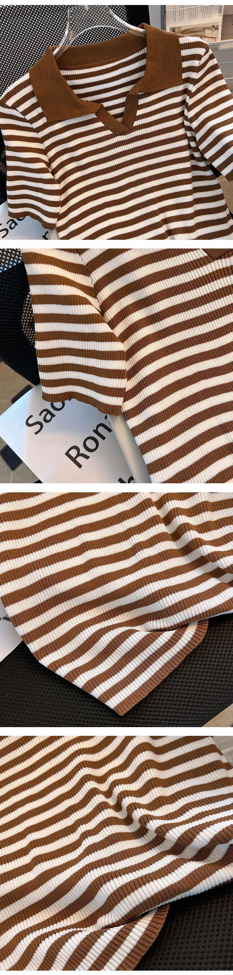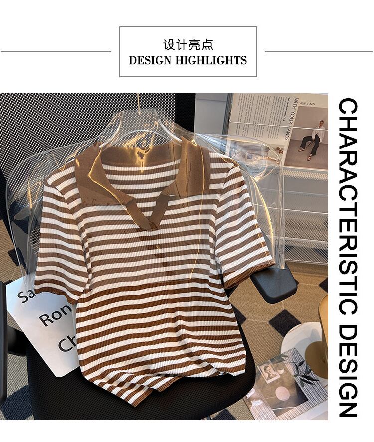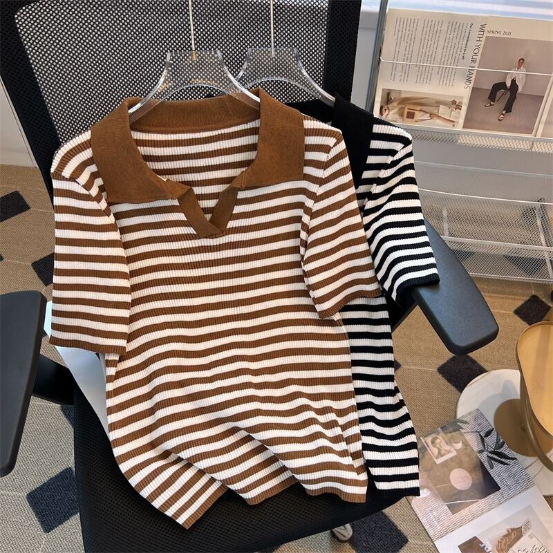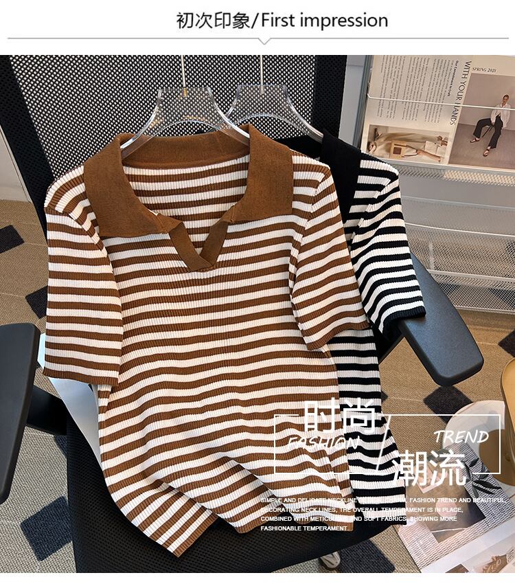 プラスサイズの婦人服 2023 トレンディな女性の夏の新しいファット シスター ポロ襟ニット半袖スリム シックな v ネック ショート t シャツ 大きめサイズ サマー 夏物 Vネック Tシャツ 8884152549817449