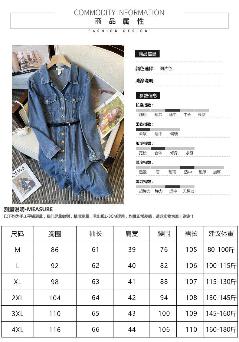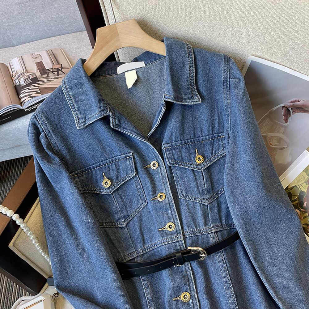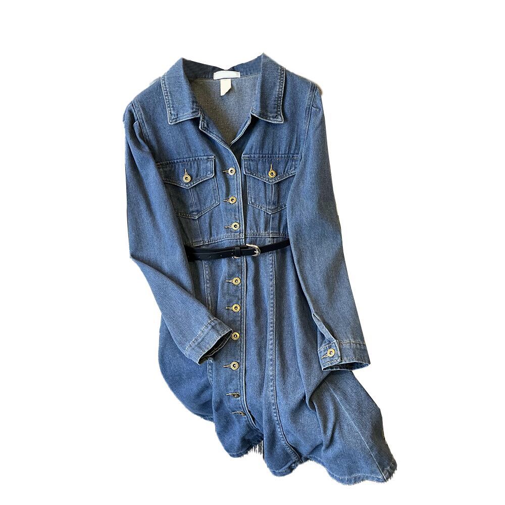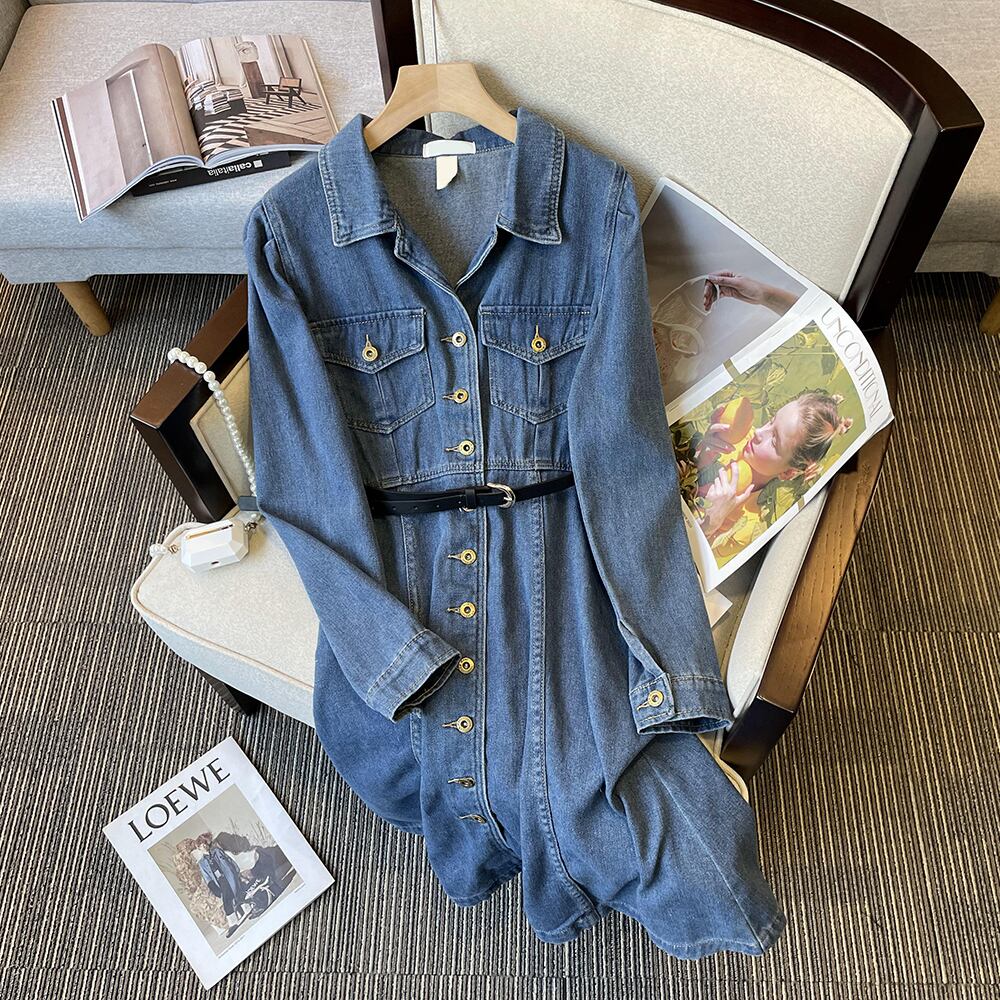 大きいサイズの婦人服 2023 春服ファットシスターズの新しいスタイルの eign スタイルの痩身と年齢を減らすデニムのミッドレングスのウエストドレス 大きめサイズ スプリング 春物 8884174356319484