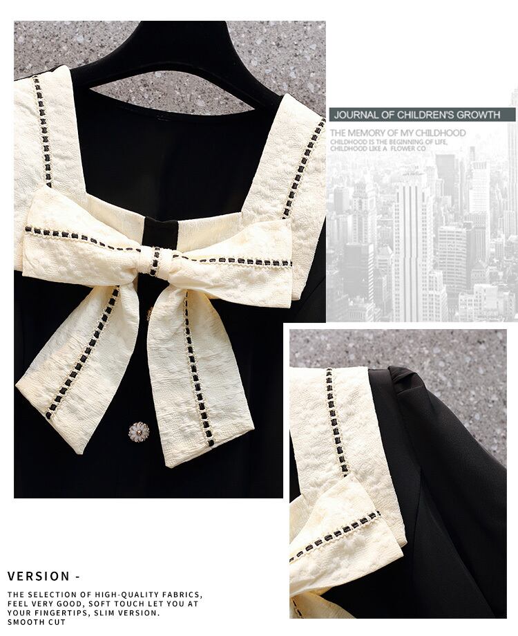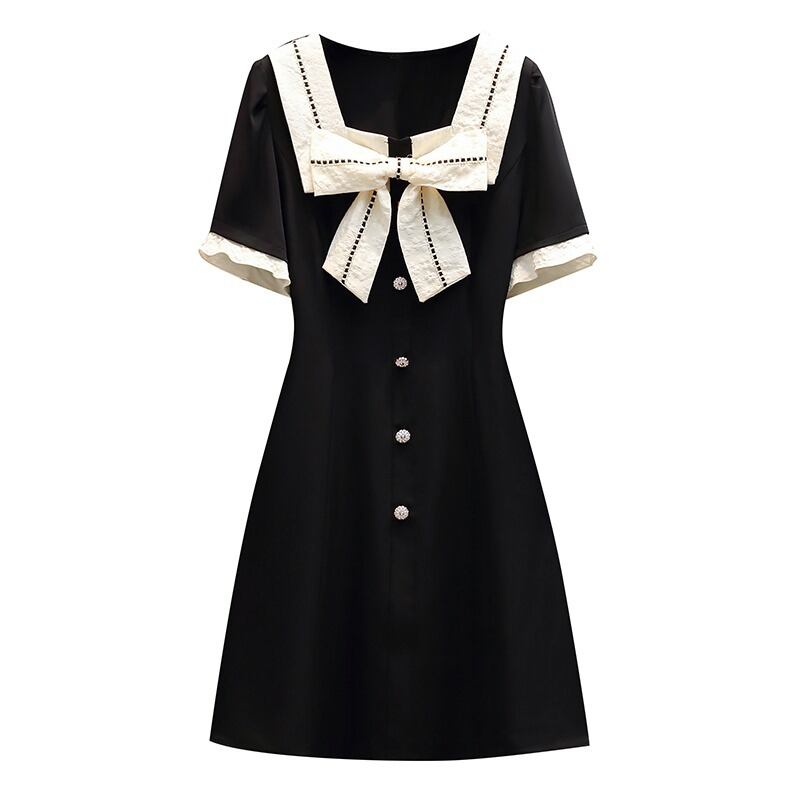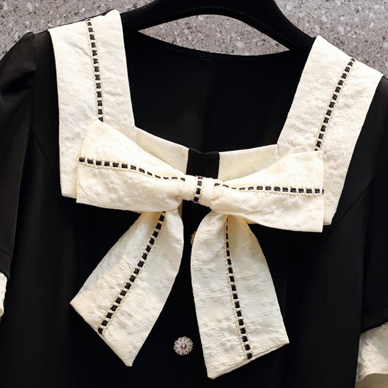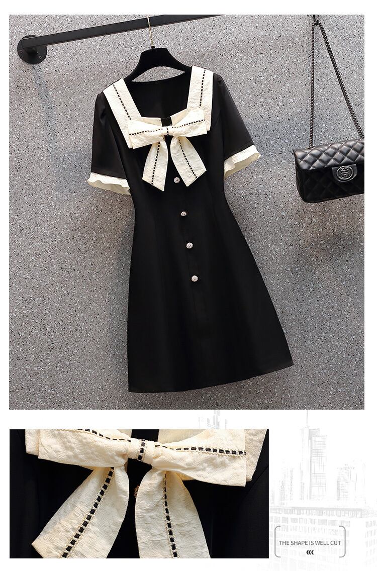 プラスサイズの婦人服 2023 夏の新しいファットシスター半袖蝶ネクタイウエストフレンチ気質カジュアルドレス リボン 大きめサイズ サマー 夏物 8884179224323436