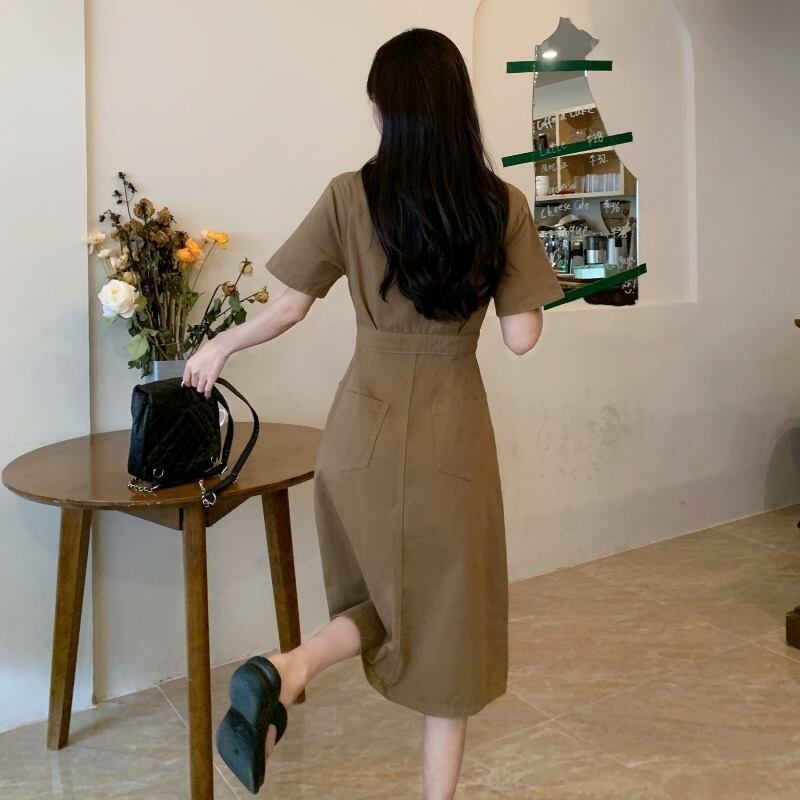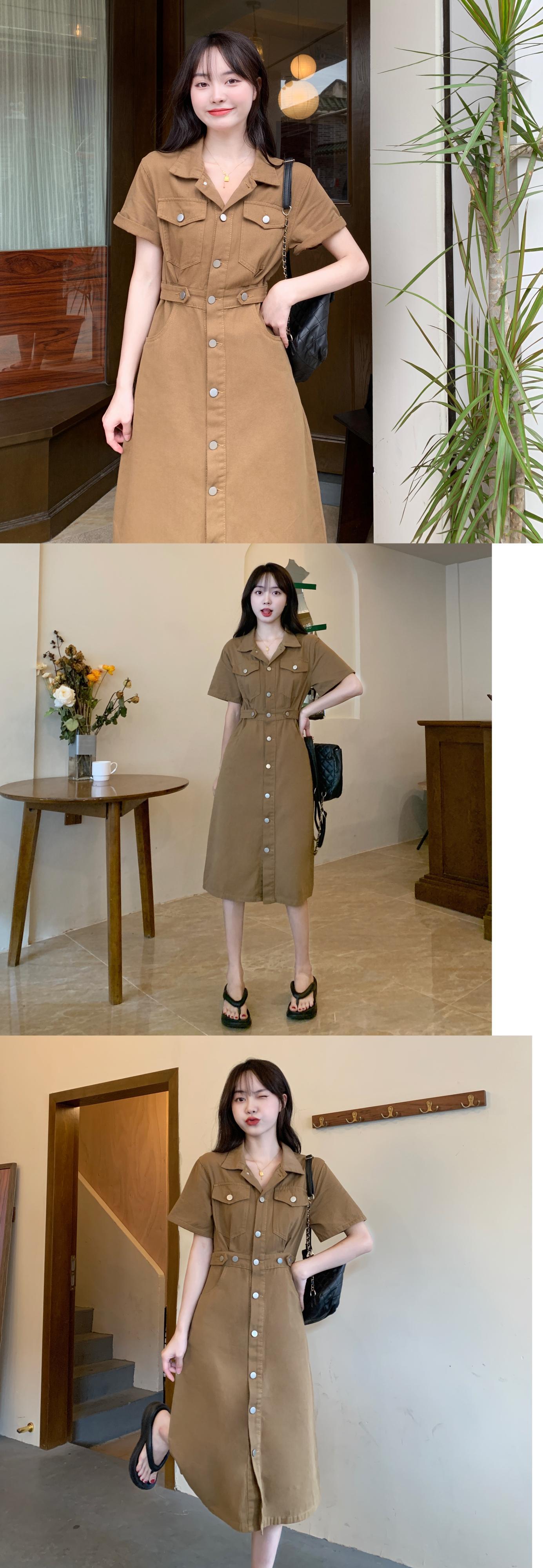 プラスサイズの婦人服 2023 トレンディな女性の夏の新しい太った姉妹のスーツの襟ウエスト痩身ファッション老化デニムドレス 大きめサイズ サマー 夏物 8884151673561279