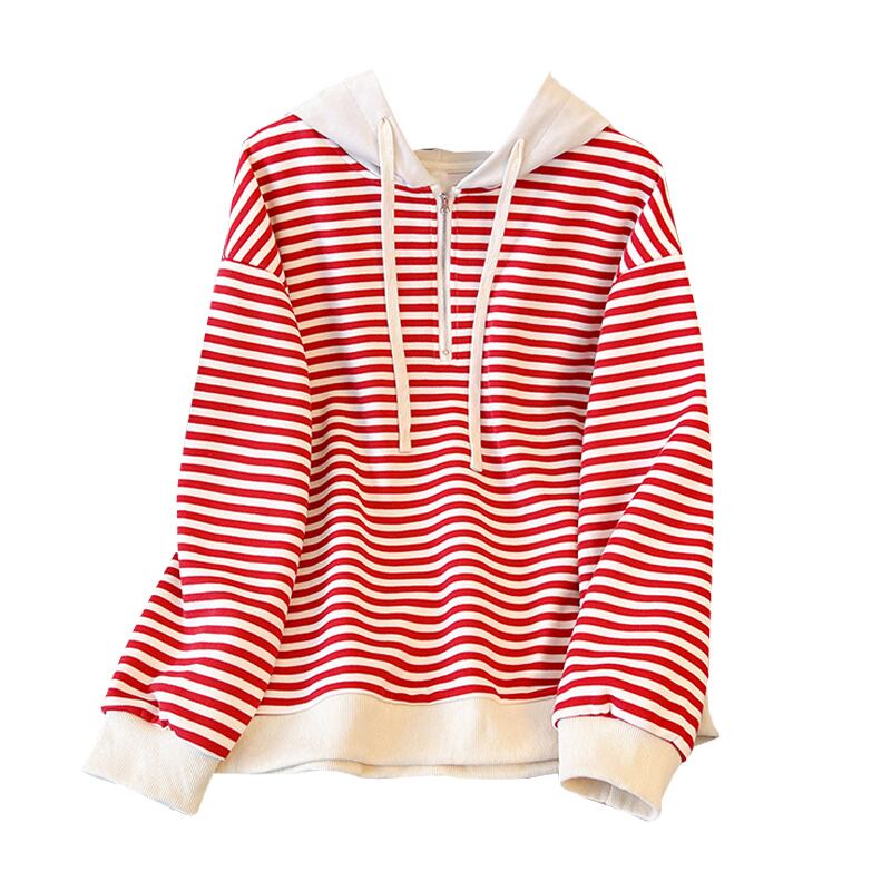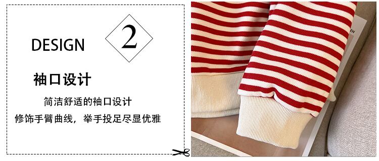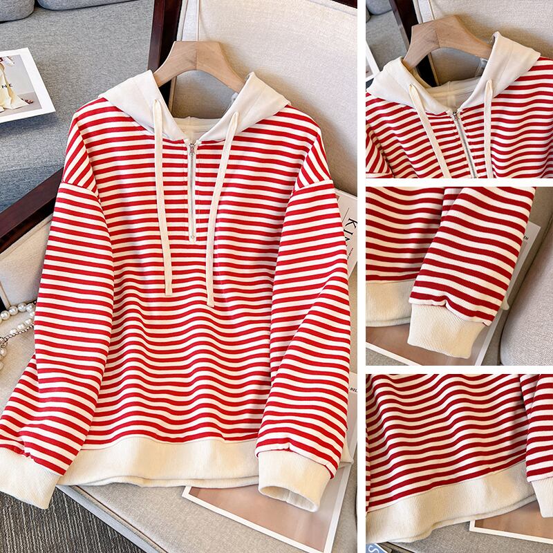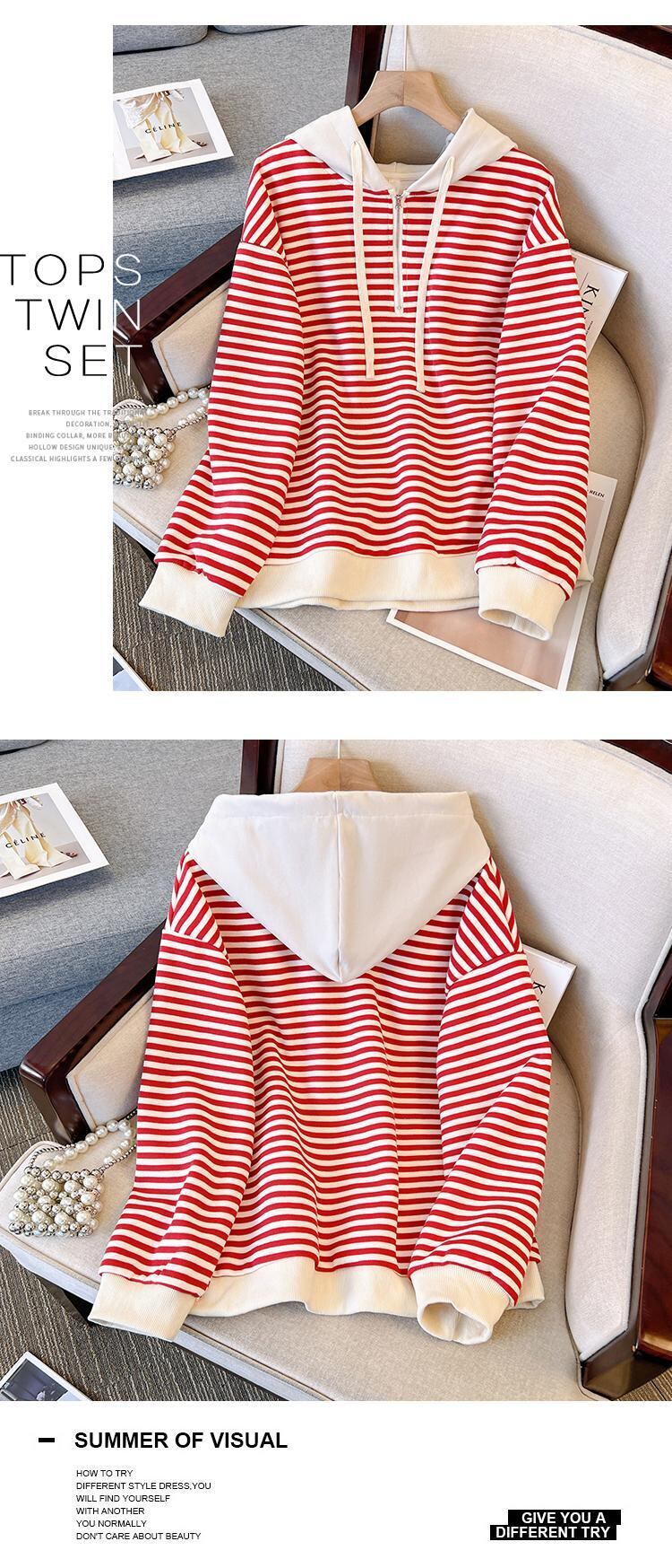 大きいサイズの婦人服 2023 春服ファットシスターズの新しいファッションの年齢を減らすルーズで薄いニッチストライプのフード付きセーター 大きめサイズ スプリング 春物 8884168796853632