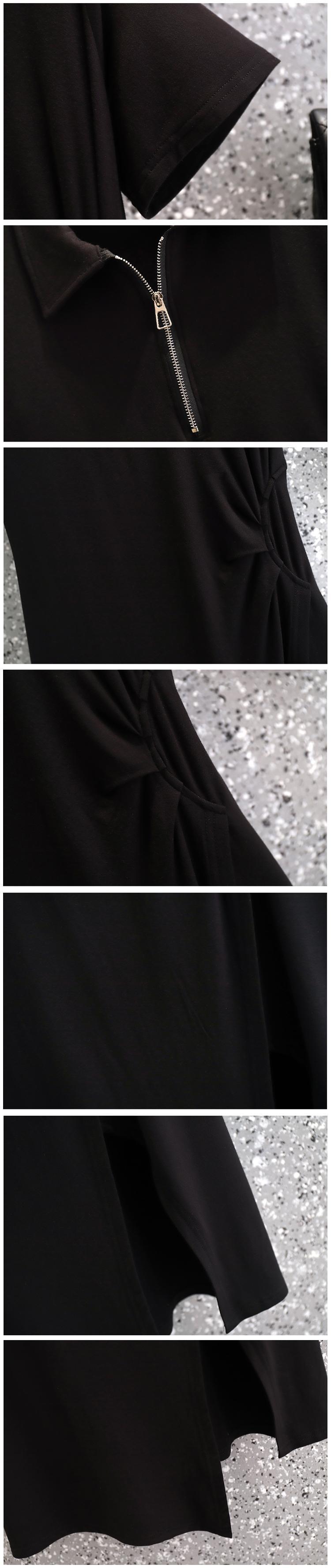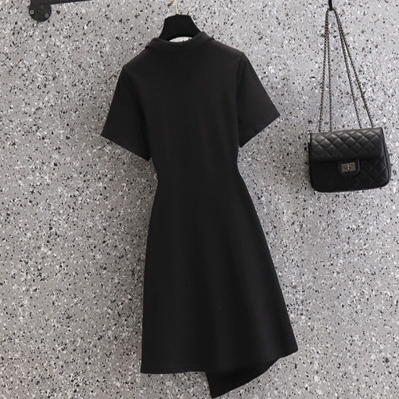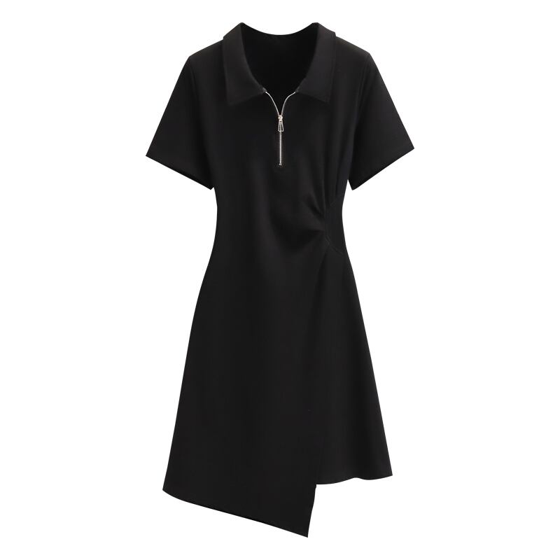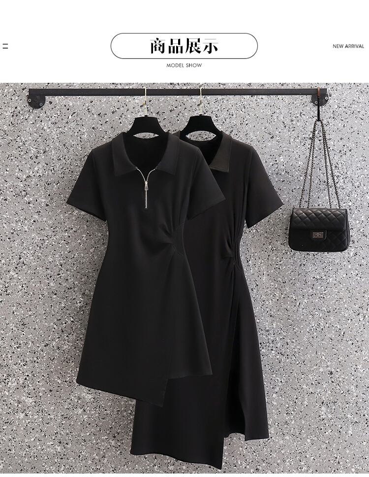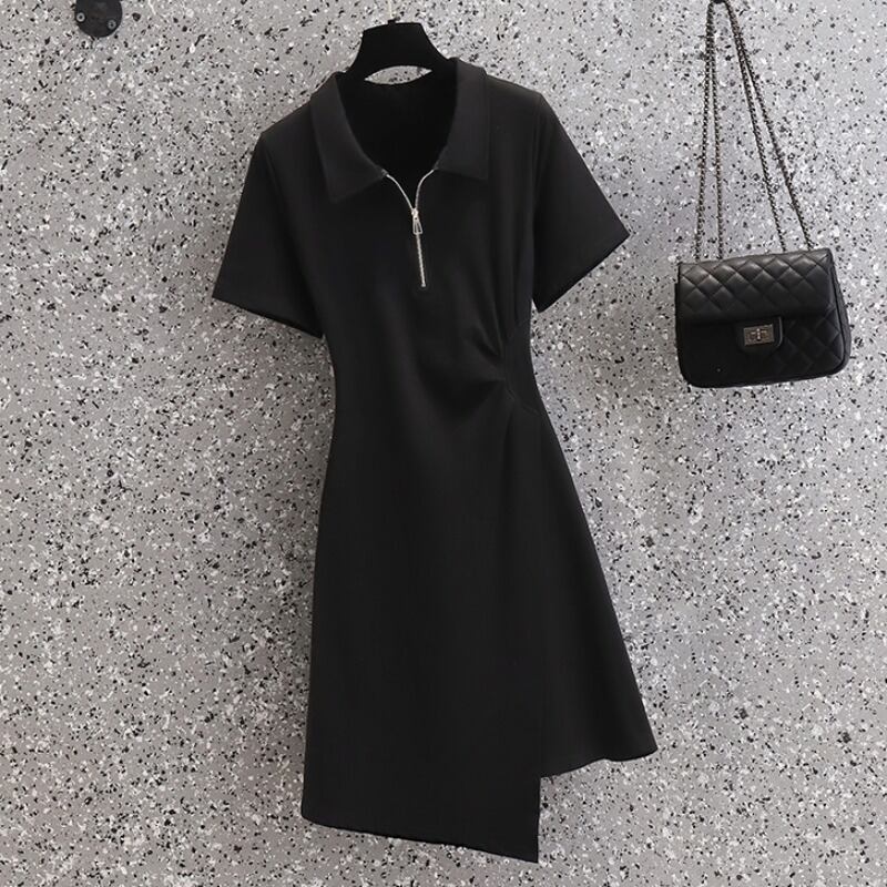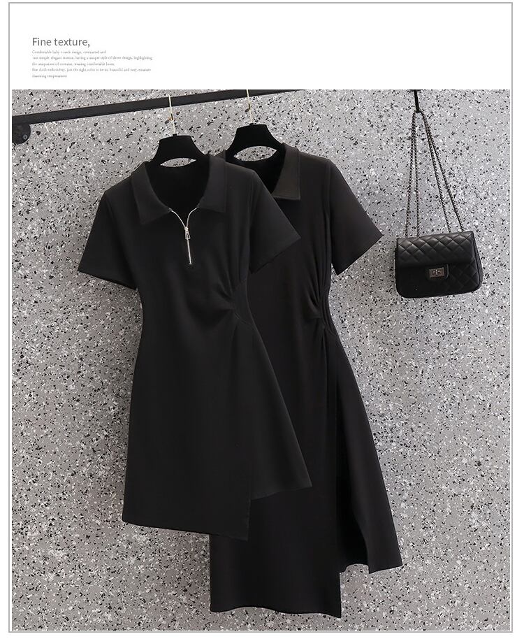大きいサイズの婦人服 2023 夏の新しいファットシスターウエスト痩身ポロ襟不規則なプリーツドレスの女性 大きめサイズ サマー 夏物 8884175916045927
