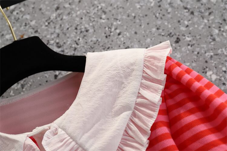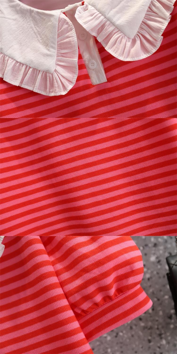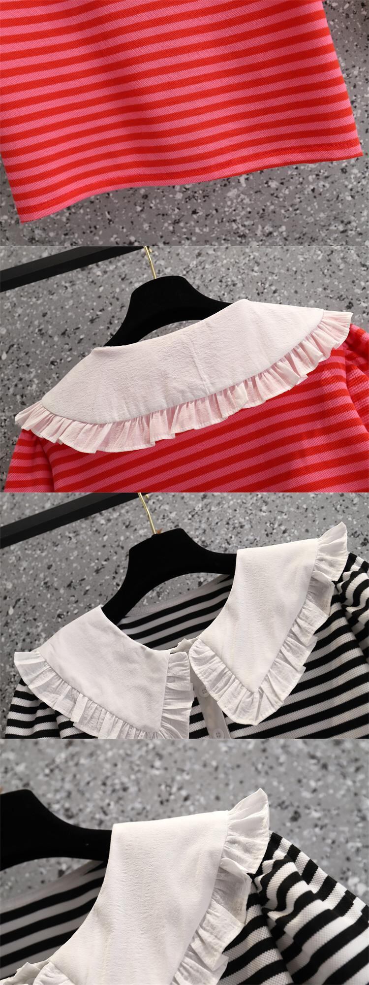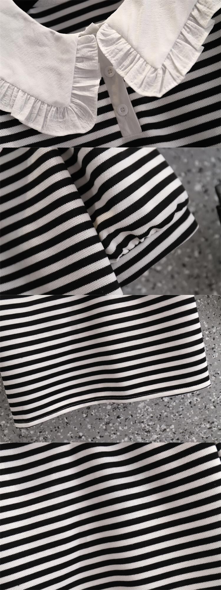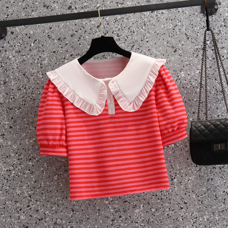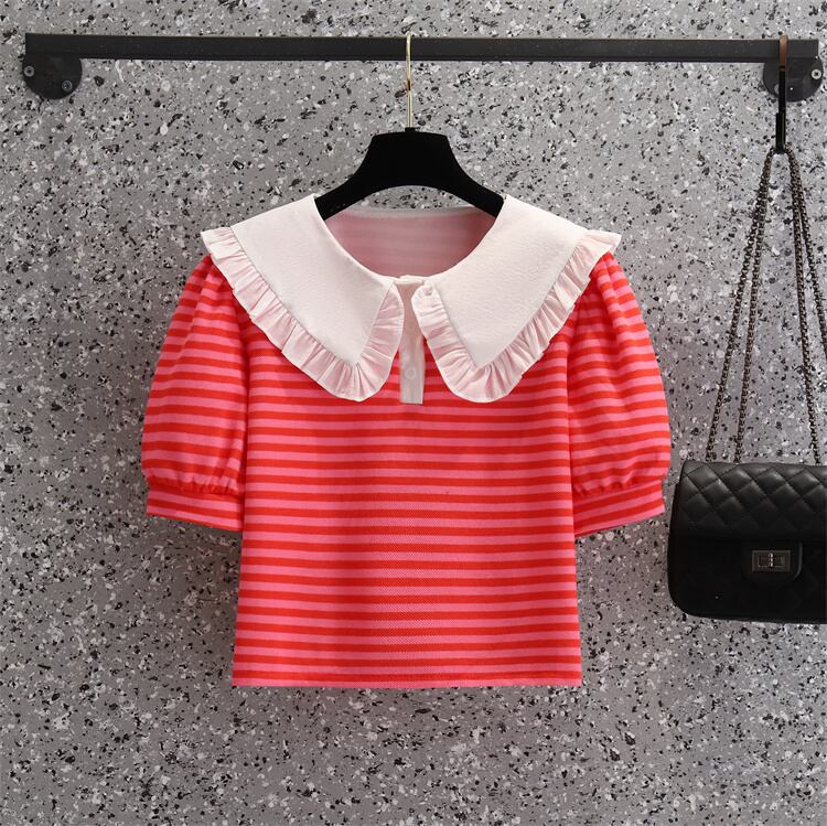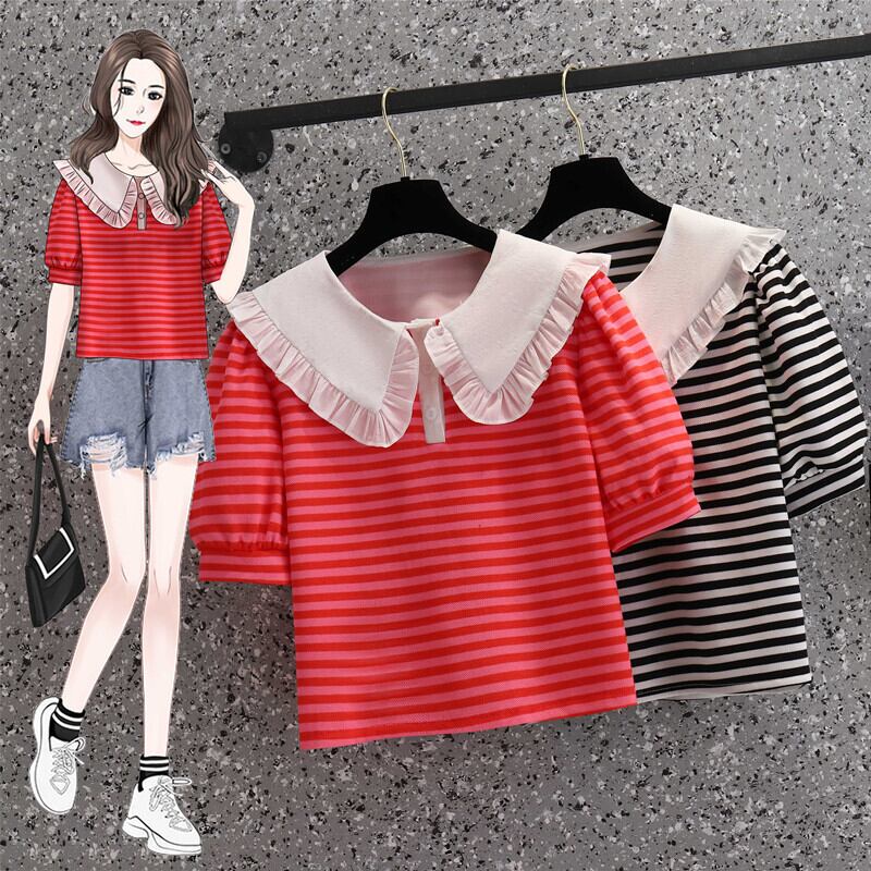 プラスサイズの婦人服 2023 夏の新しい脂肪姉妹ファッション人形の襟半袖シックなストライプの気質トップ女性 大きめサイズ サマー 夏物 8884168702249303