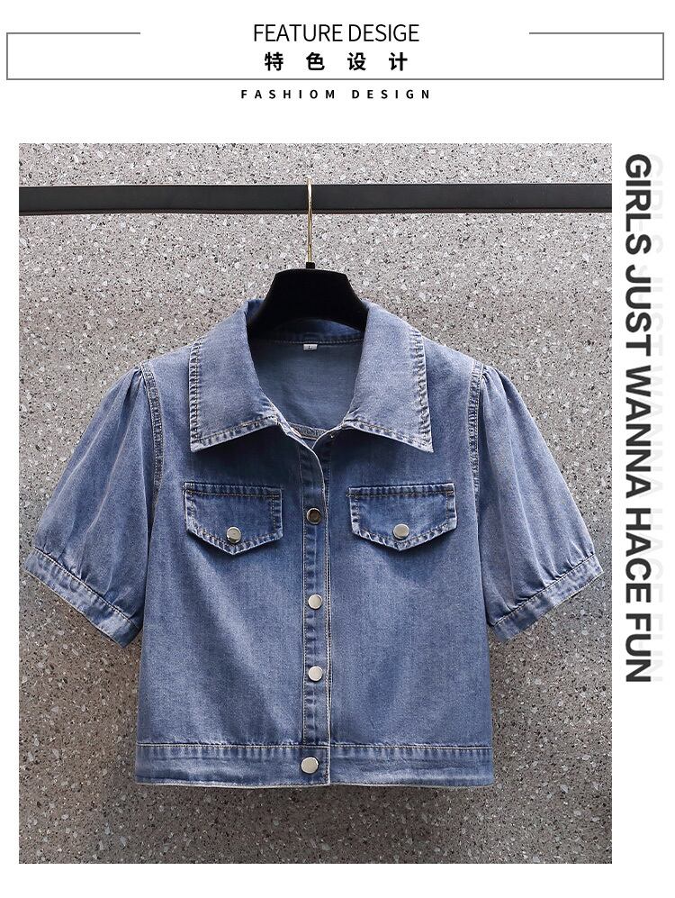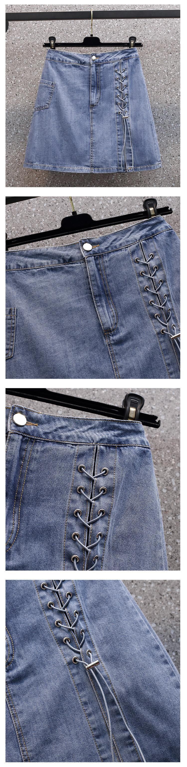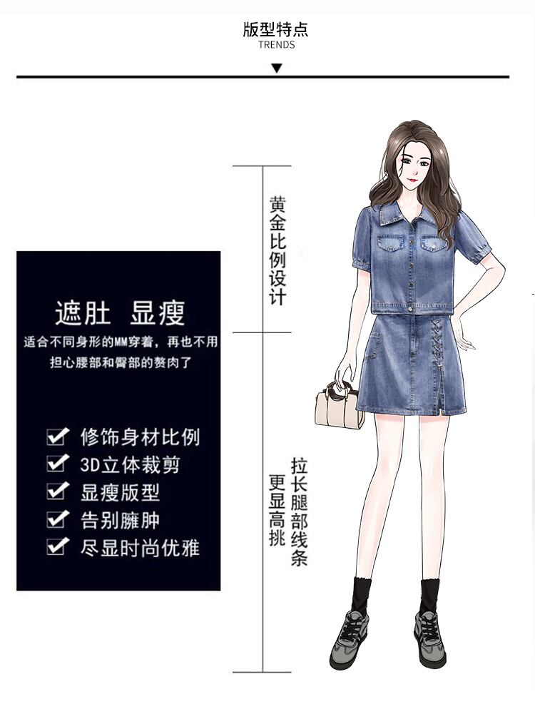 プラスサイズの婦人服 2023 夏の新しい太った姉妹年齢を減らすデニム トップ ハイ ウエスト ファッション スカート 2 点セット ハイウェスト 大きめサイズ サマー 夏物 8884196053087218
