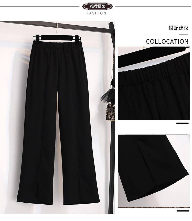 プラスサイズの婦人服 2023 夏の新しいファットシスター気質ハイウエスト緩い無地スリット 18k 年齢を減らすマイクロブーツパンツ女性 ハイウェスト 大きめサイズ サマー 夏物 ソリッドカラー 8884171114153971