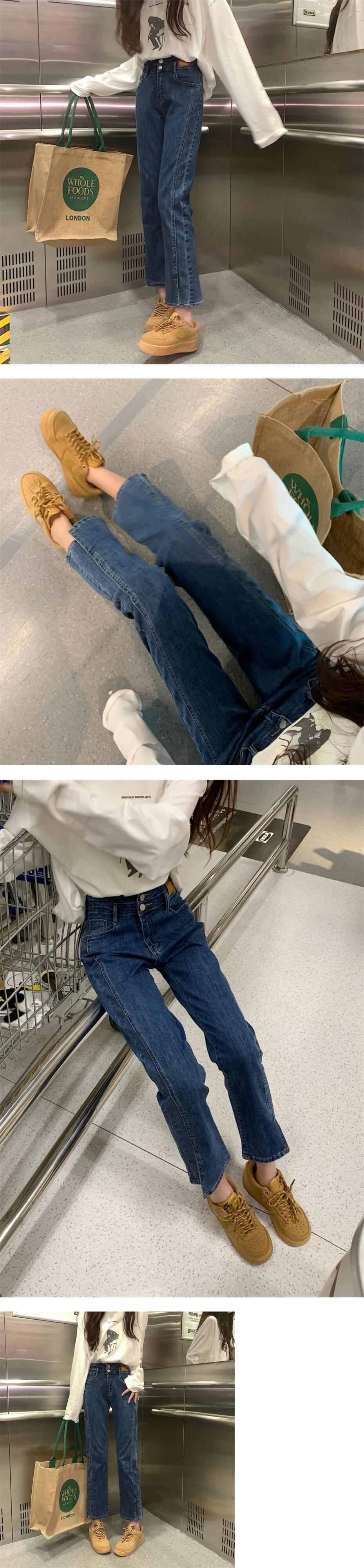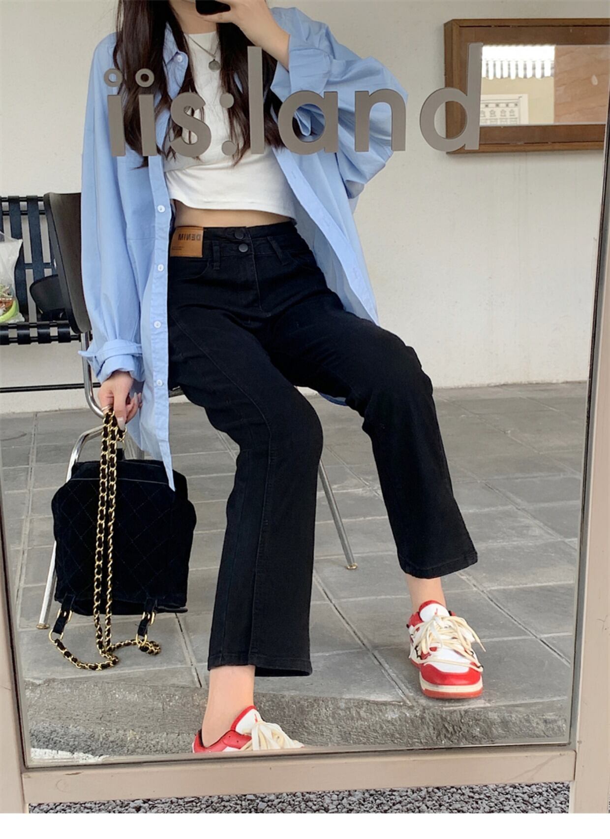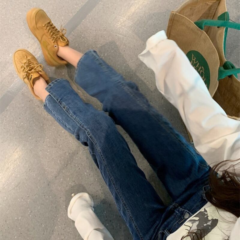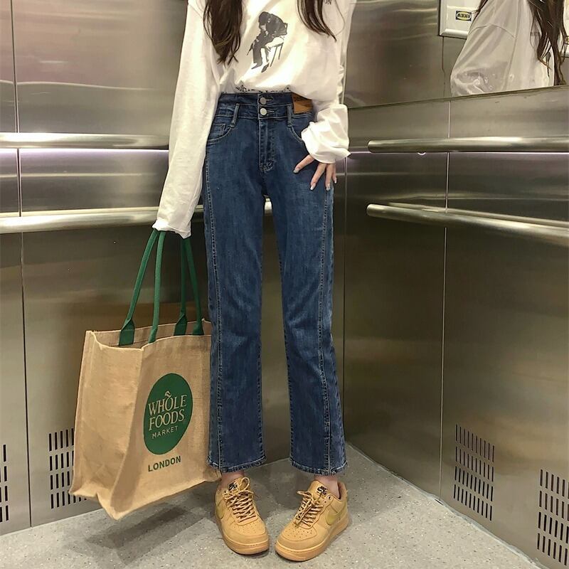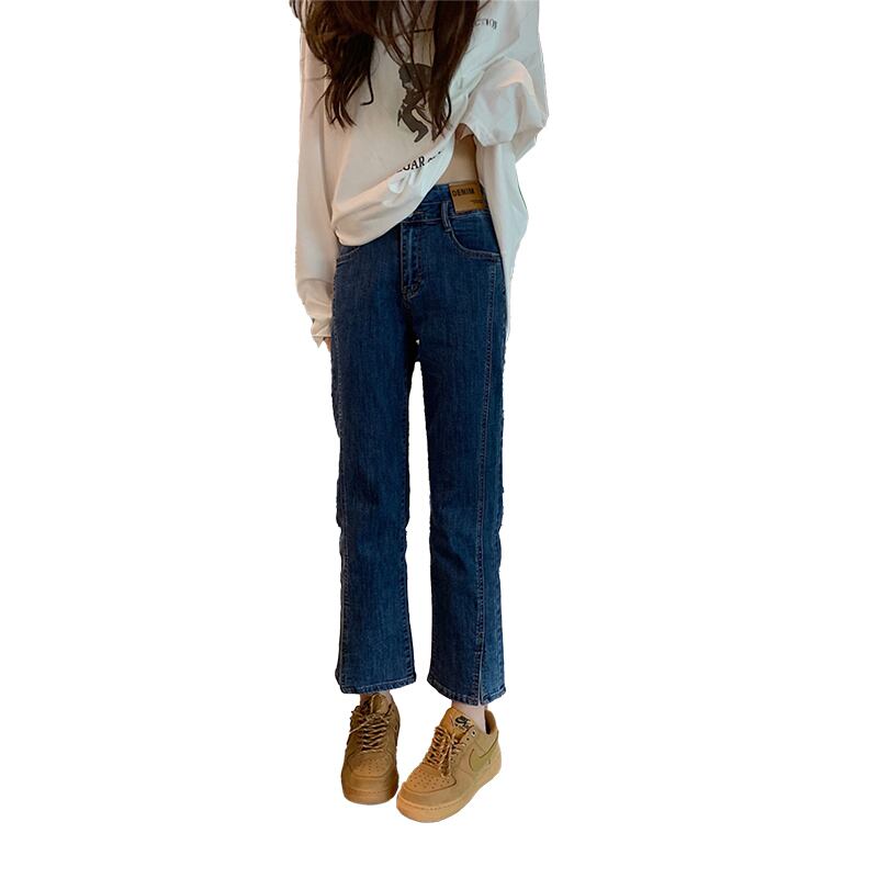 プラスサイズの婦人服 2023 春服脂肪姉妹新スリットストレートジーンズ痩身ハイウエスト弾性クロップドパンツ ハイウェスト エラスティック 伸縮 大きめサイズ スプリング 春物 8884184237676464