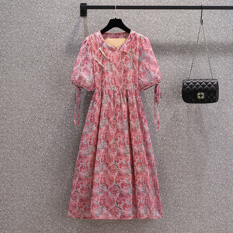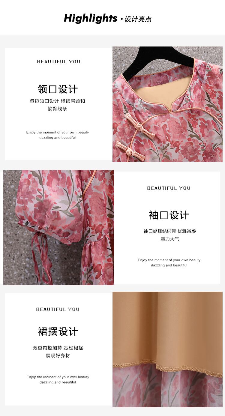 プラスサイズの婦人服 2023 太った姉妹の夏の新しいレトロな中国風の腹カバーと年齢を減らす色のチャイナ ドレスの女性 大きめサイズ サマー 夏物 8884134409602270