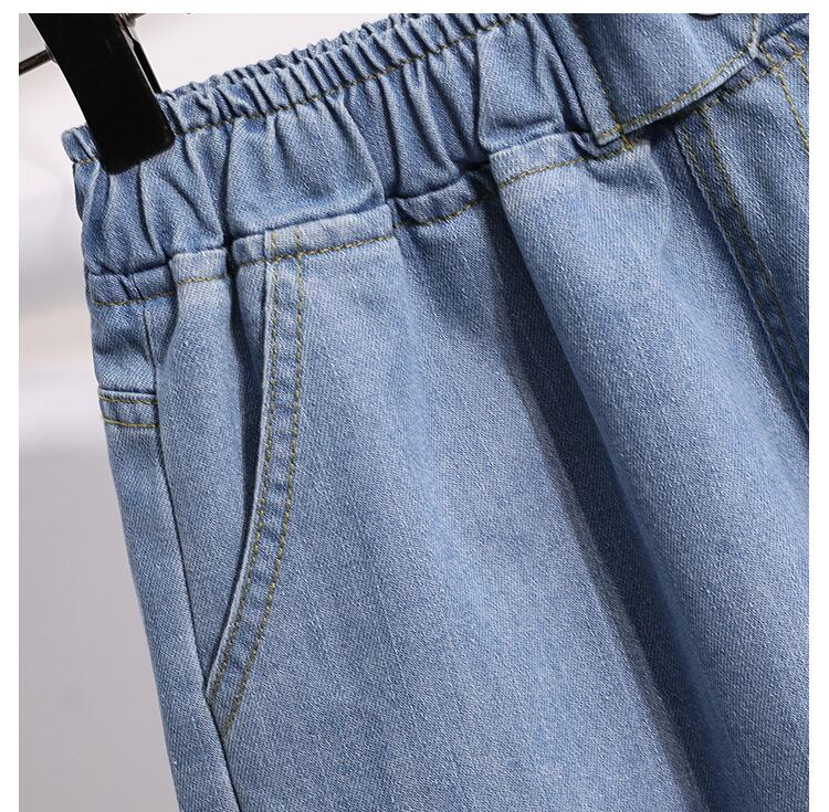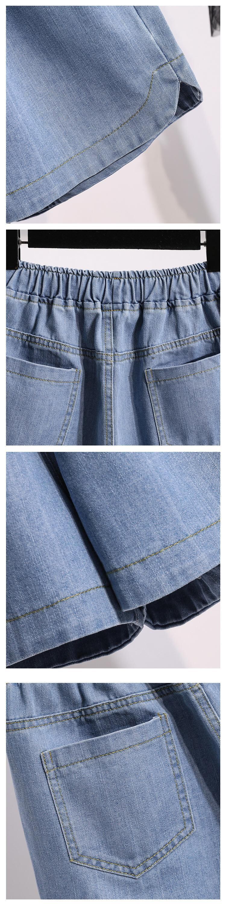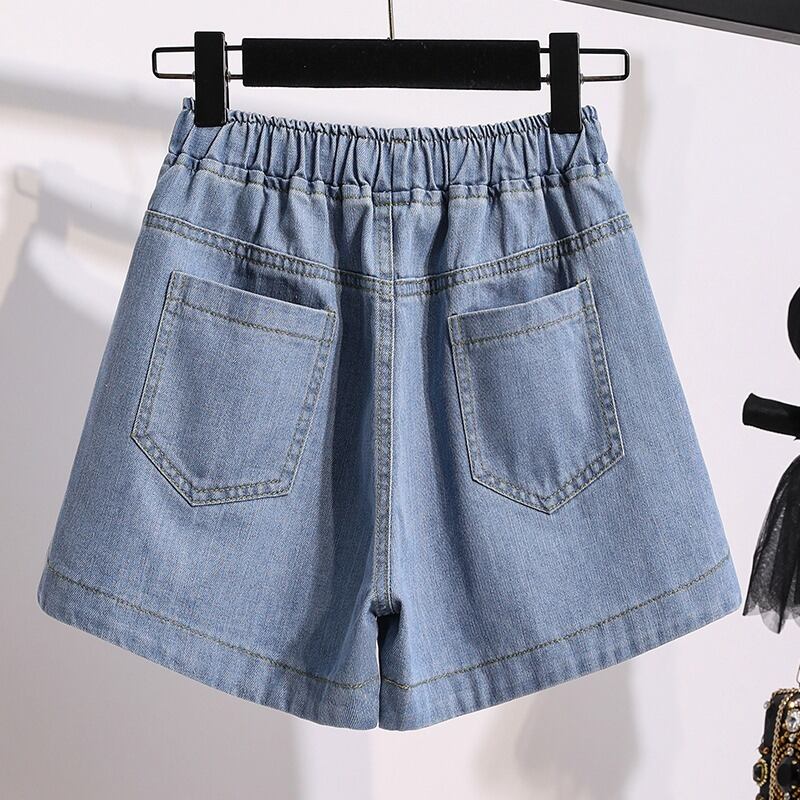 プラスサイズの婦人服 2023 トレンディな女性の夏の新しいファットシスタールーズアプリコットカラーワイドレッグハイウエスト eign スタイルジーンズショーツ女性 ハイウェスト 大きめサイズ サマー 夏物 ブルマー ワイドパンツ 8884162665070458