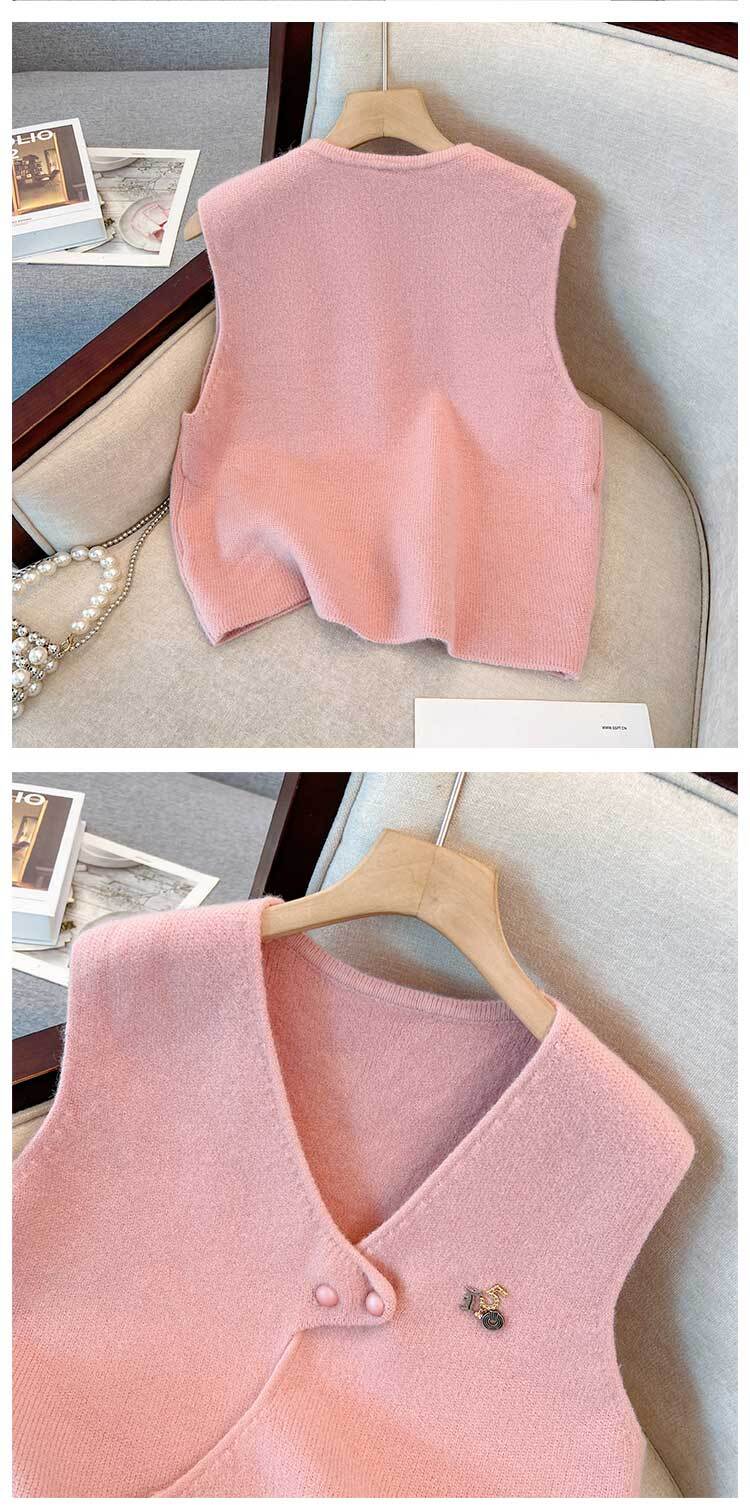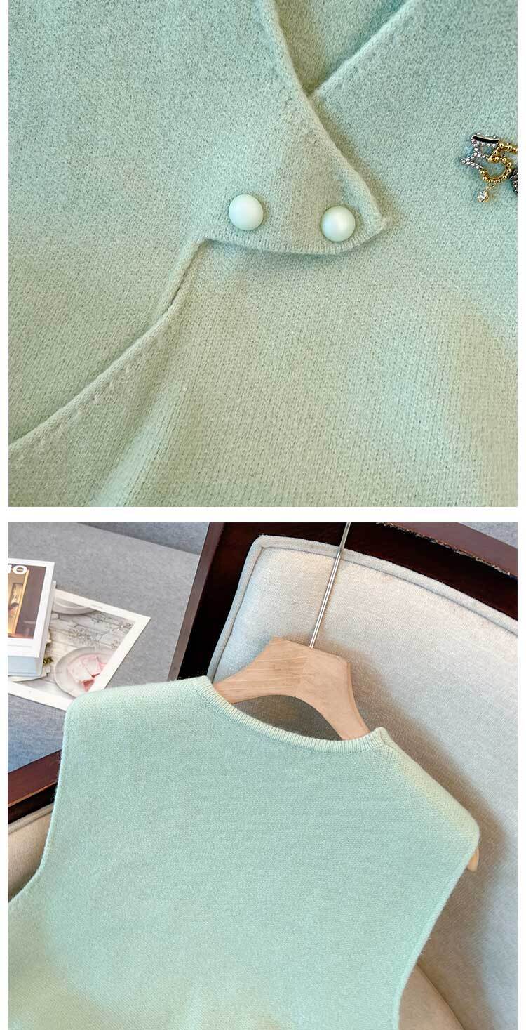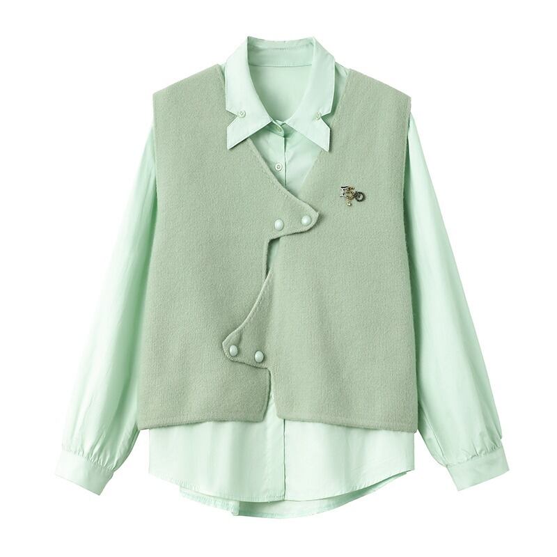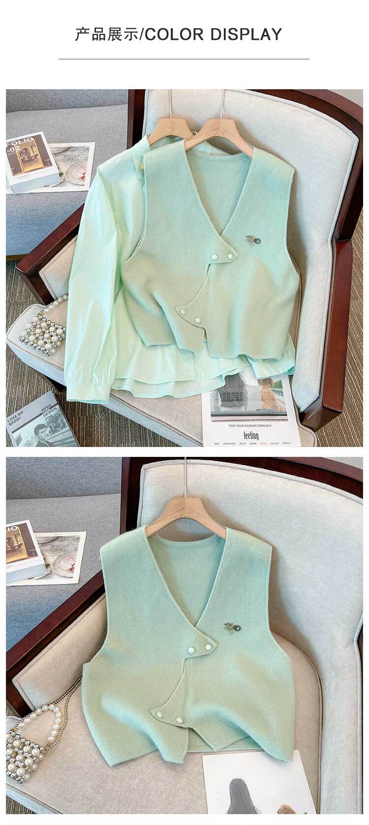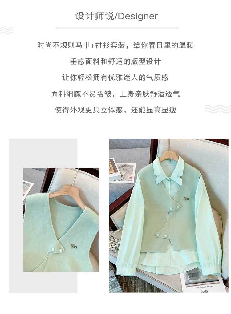 大きいサイズの婦人服 2023 トレンディな女性の春の新しい太った姉妹ファッション ニット ベスト不規則な薄いシャツ 2 点セット 大きめサイズ スプリング 春物 8884159359899034