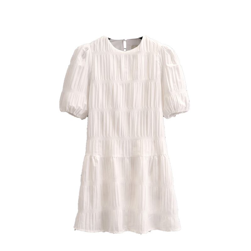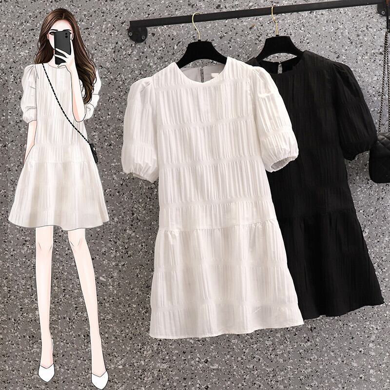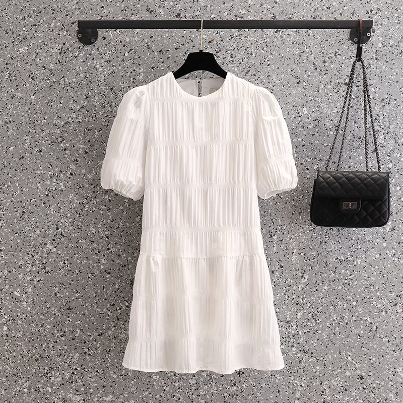 プラスサイズの婦人服 2023 夏の新しい脂肪姉妹ファッション気質プリーツ半袖シックなラウンド ネック ドレス女性 大きめサイズ サマー 夏物 Oネック 8884142875413626