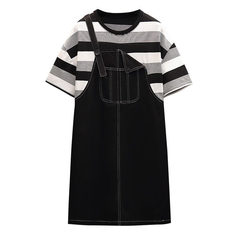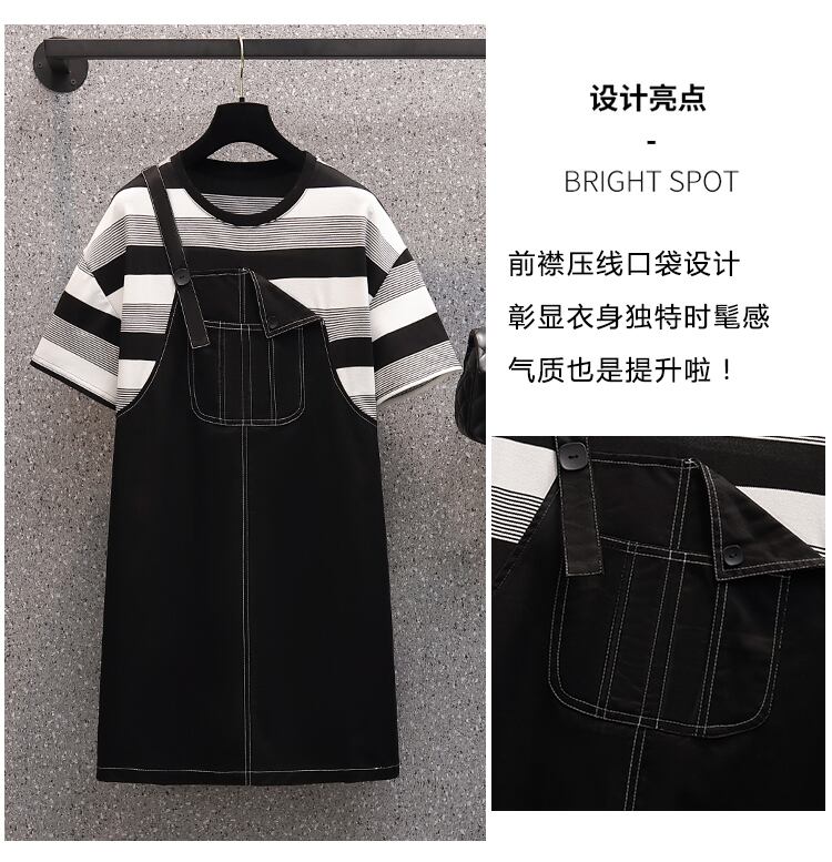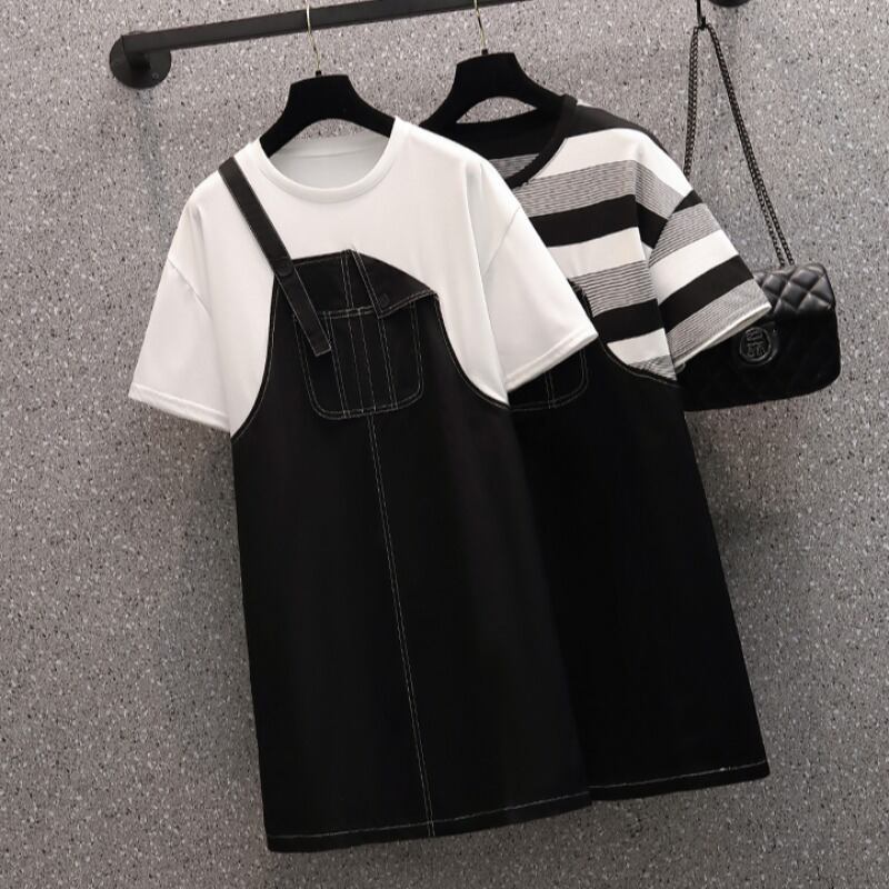 プラスサイズの婦人服 2023 トレンディな女性の夏の新しい脂肪姉妹ファッション気質薄い偽ツーピースサスペンダードレス女性 大きめサイズ サマー 夏物 888415491360995
