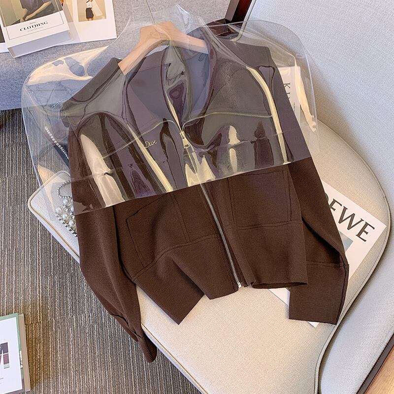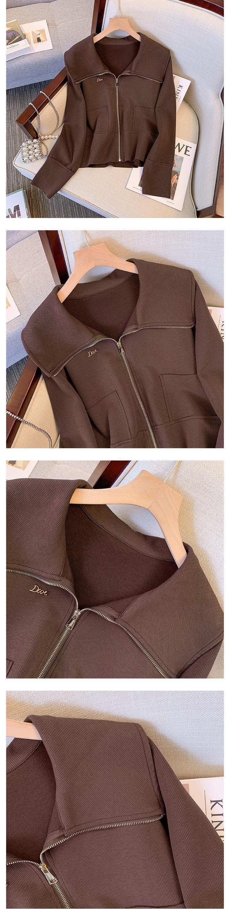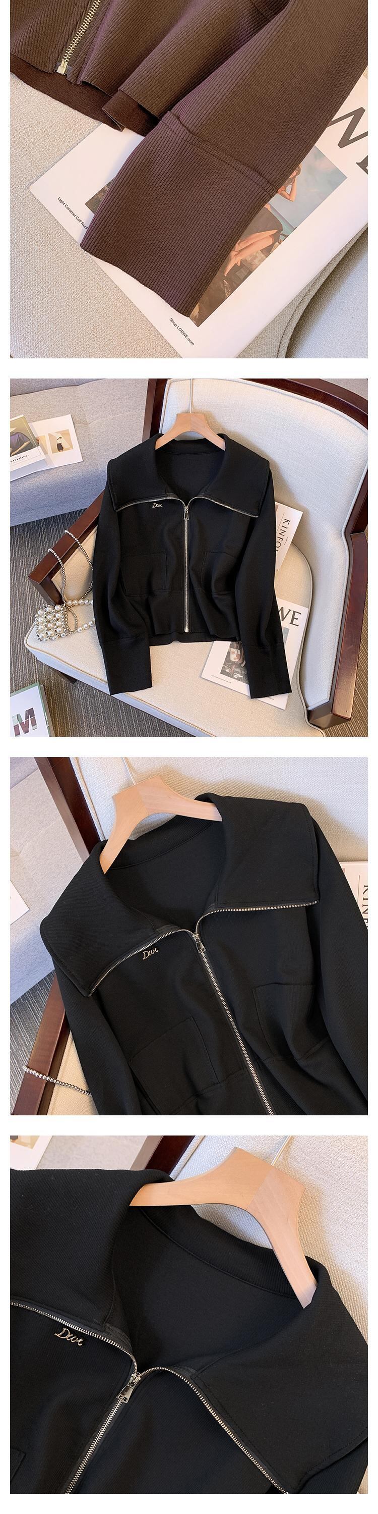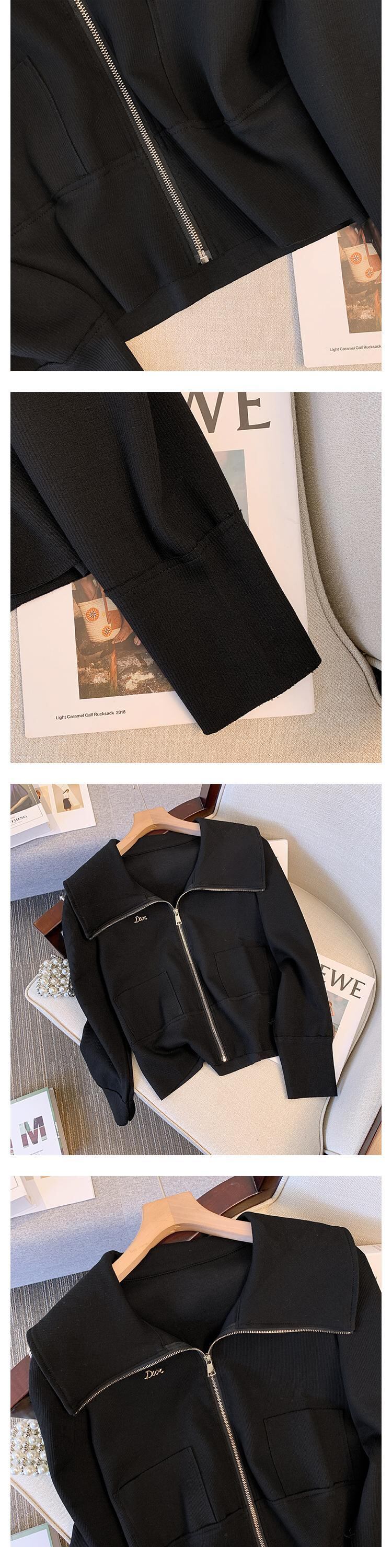 プラスサイズの婦人服 2023 春服ファットシスターズ新スタイル eign スタイル薄型オールマッチネイビーカラージッパーカーディガンジャケット女性 大きめサイズ スプリング 春物 888414513813592