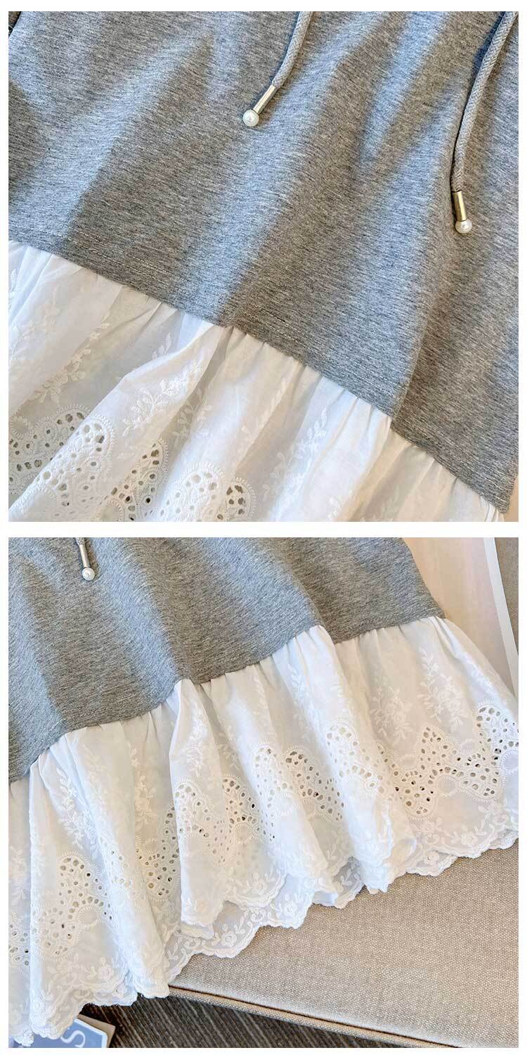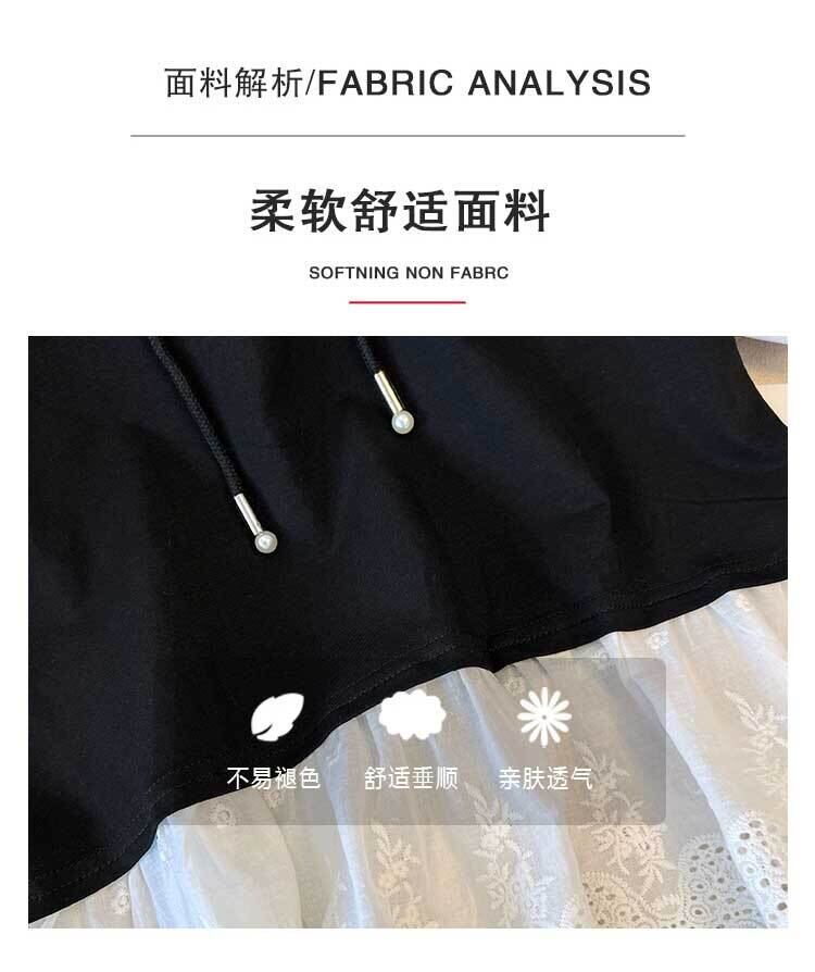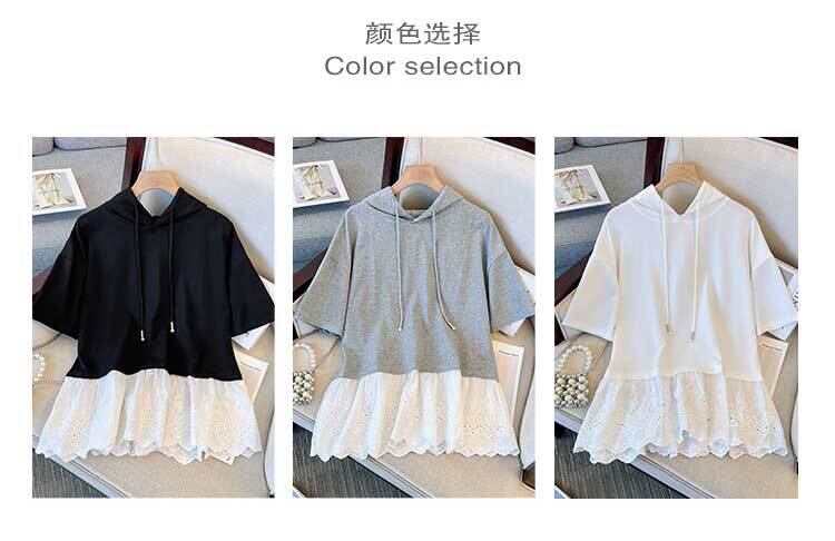 大きいサイズの婦人服 2023 夏の新しいファット シスター 年齢を減らすルーズで薄いスプライシング フード付きの半袖のシックなトップ 大きめサイズ サマー 夏物 88841508283576