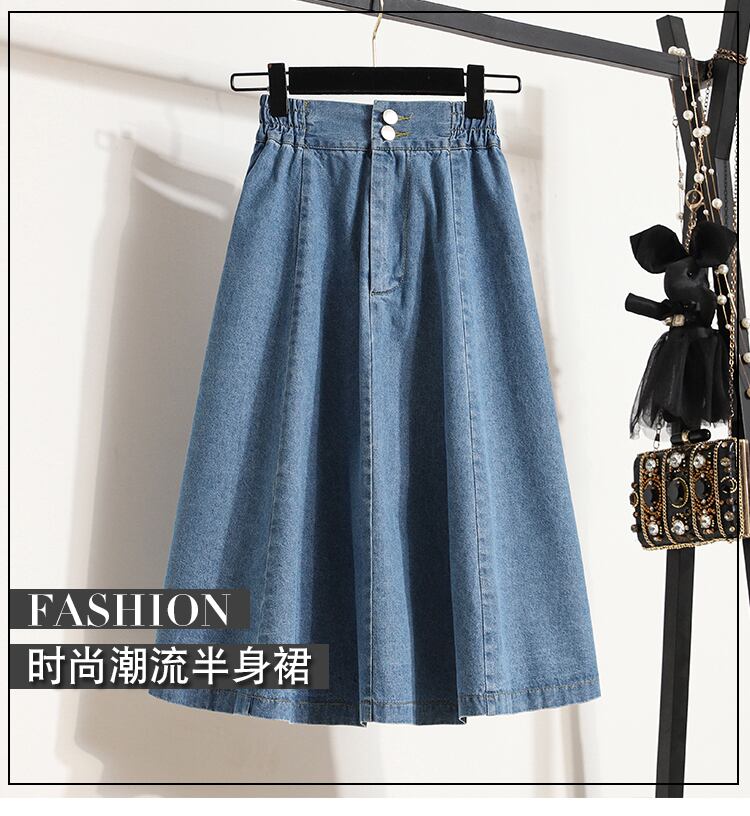 プラスサイズの婦人服 2023 トレンディな女性の夏の新しい太った姉妹 eign スタイルオールマッチミッドレングスプリーツハイウエストデニムスカート 大きめサイズ サマー 夏物 8884160554010655