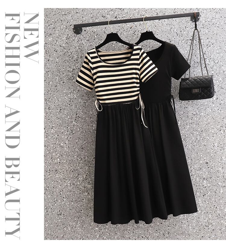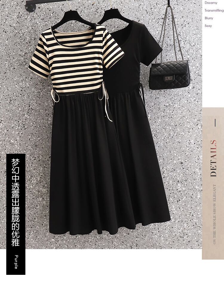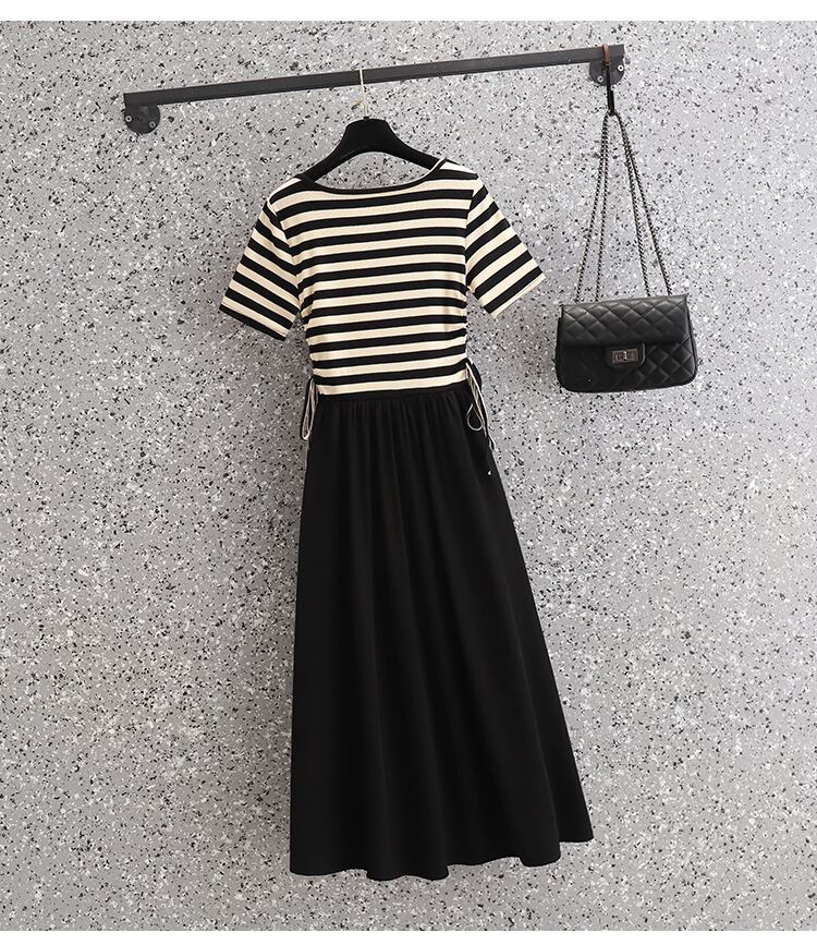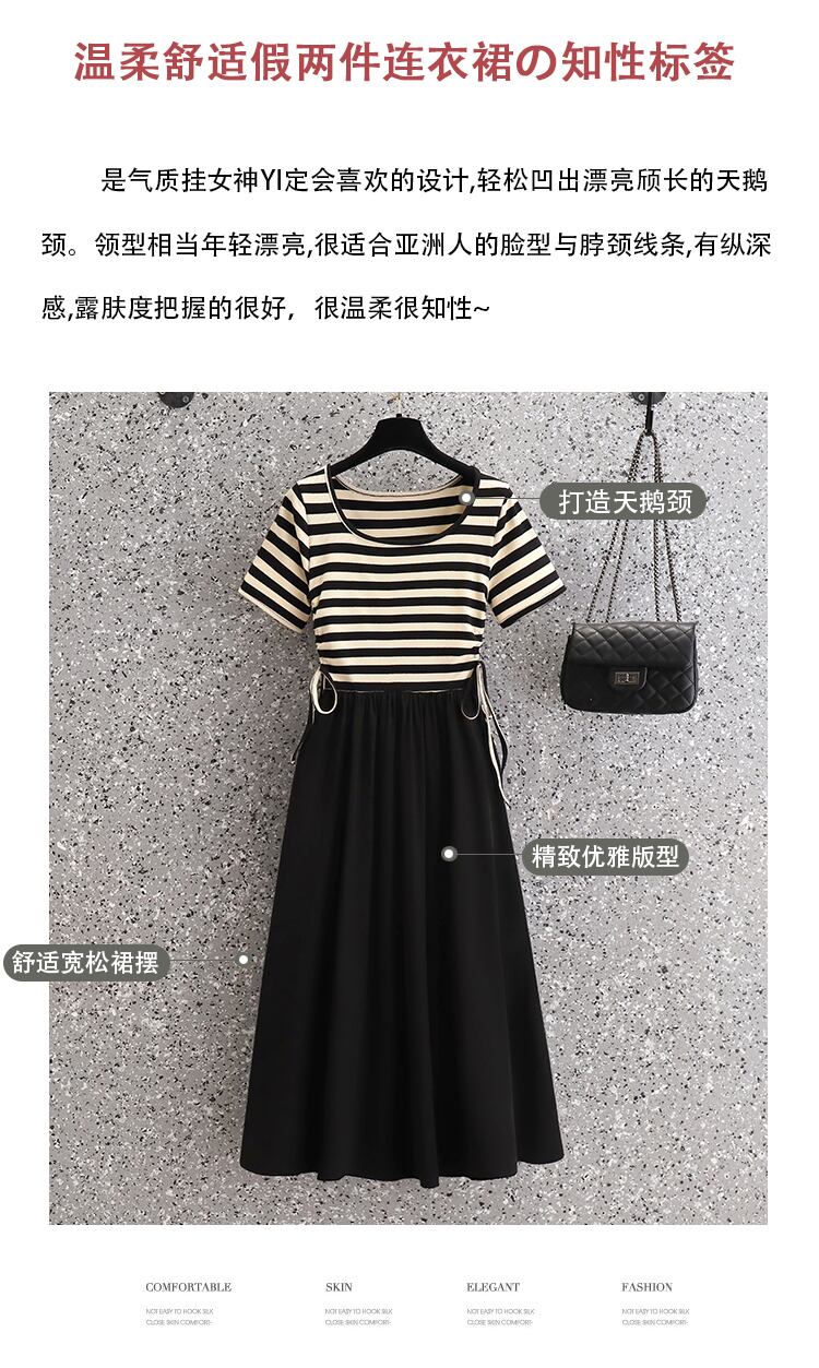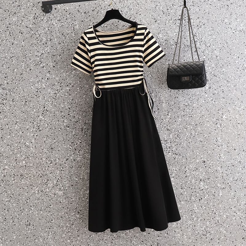 プラスサイズの婦人服 2023 脂肪姉妹夏の新しいファッション痩身ストライプ ニット シフォン ドレス 大きめサイズ サマー 夏物 8884198619416083