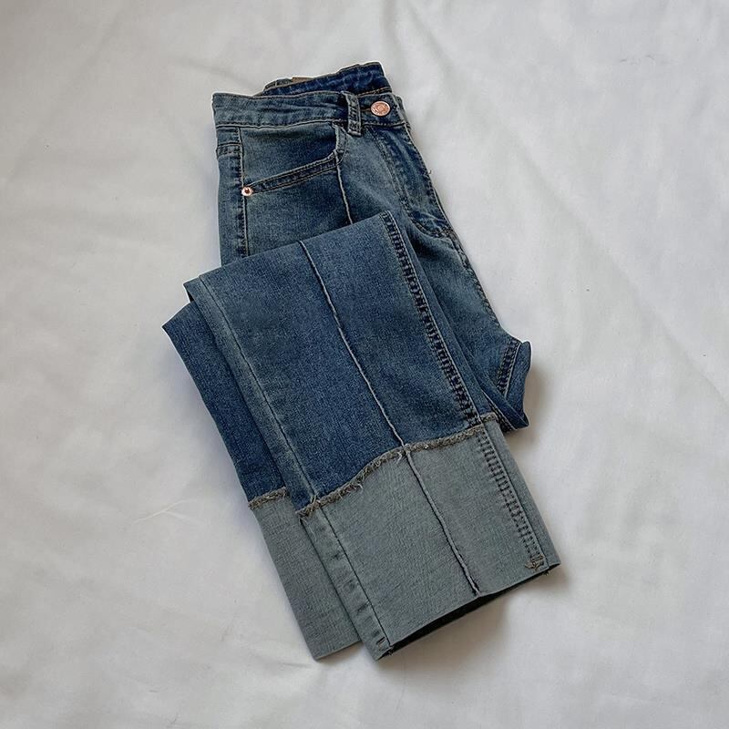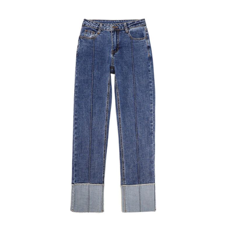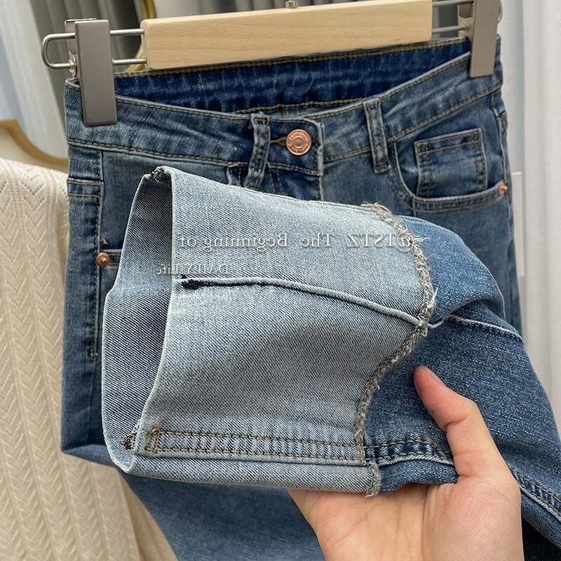 プラスサイズの婦人服 2023 ファットシスター夏の新しいスタイルカーリーステッチストレートジーンズハイウエスト弾性クロップドパンツ ハイウェスト エラスティック 伸縮 大きめサイズ サマー 夏物 88841472199803