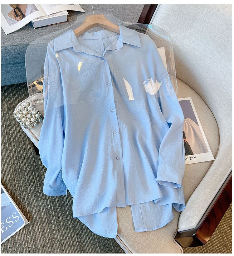 大きいサイズの婦人服2023春服ファットシスターズ新作スリット日焼け止めシャツタイアップゆったり薄手シャツ 大きめサイズ スプリング 春物 8884123417236494