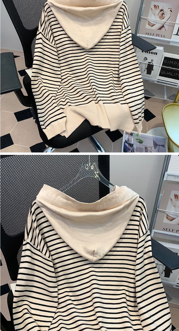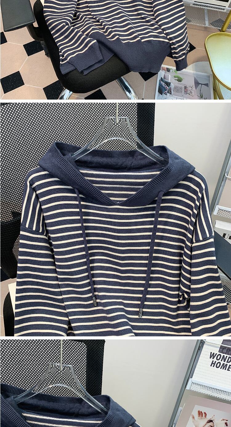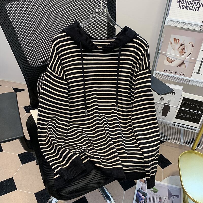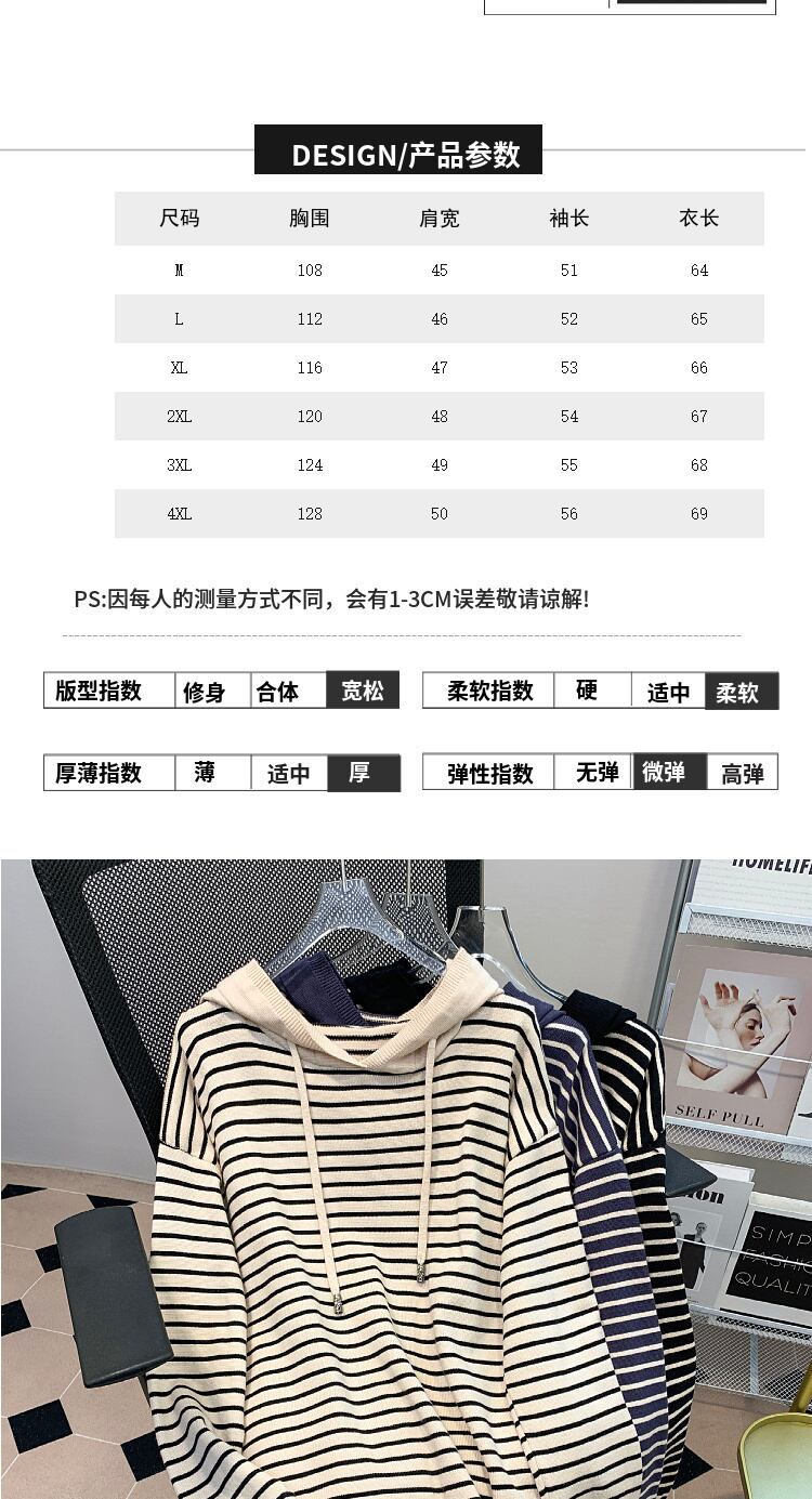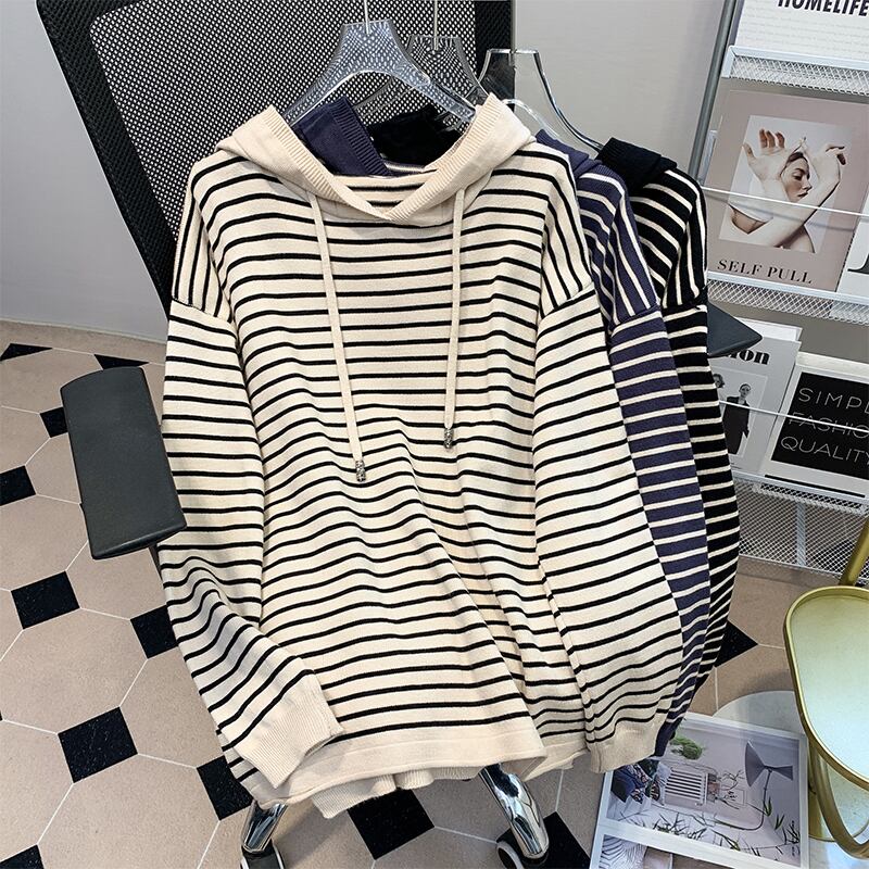 プラスサイズの婦人服 2023 春服脂肪姉妹新ストライプフード付きセーターカジュアルファッションプルオーバーセーター女性 大きめサイズ スプリング 春物 8884115686400490