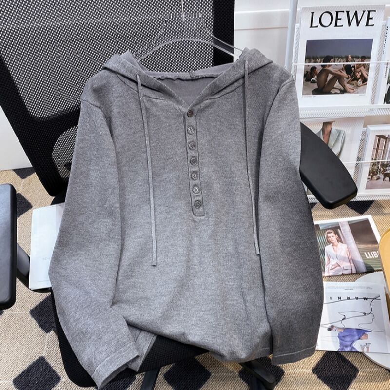 プラスサイズの婦人服 2023 春の新スタイルファットシスターオールマッチシックルーズニッチフード付き無地長袖トップ女性 ロング 大きめサイズ スプリング 春物 ソリッドカラー 8884132141888643