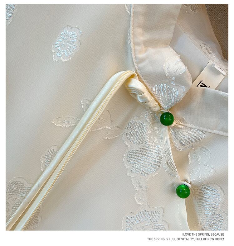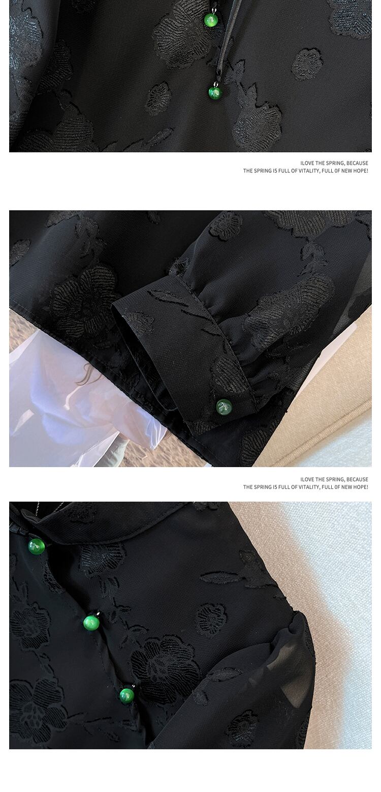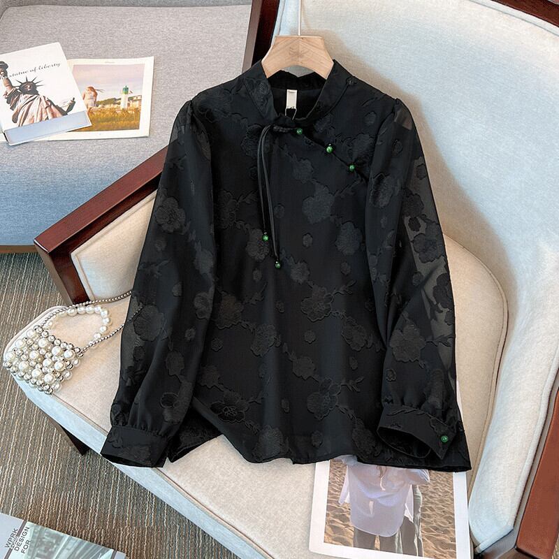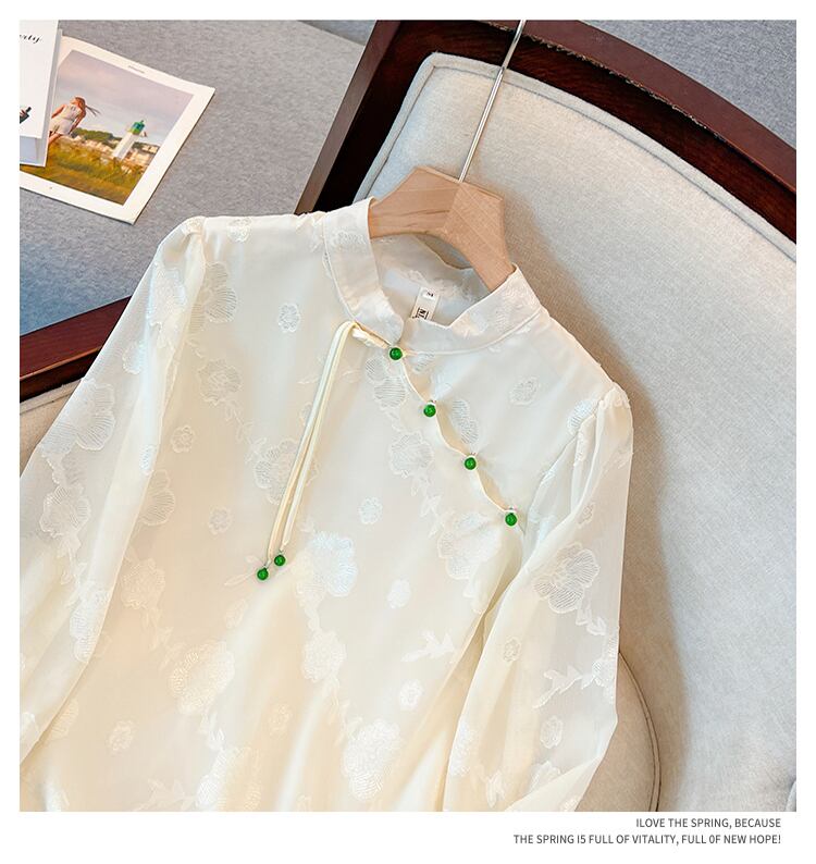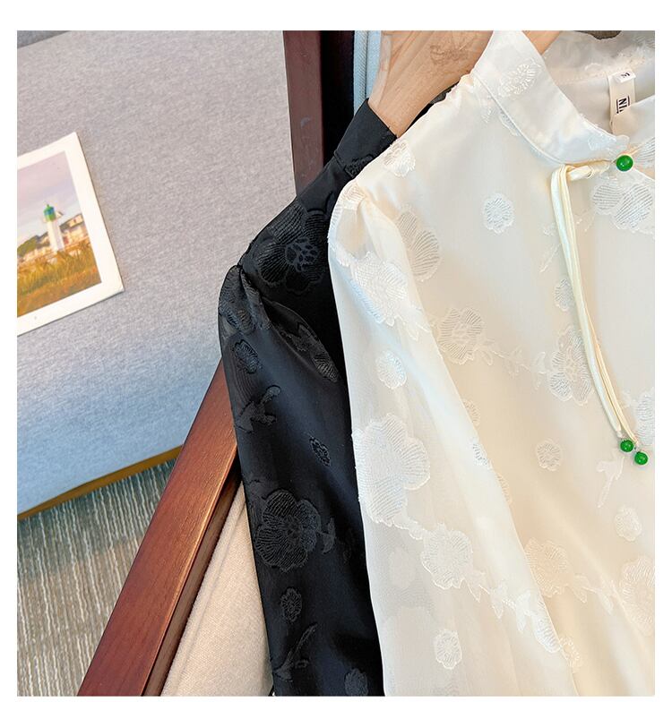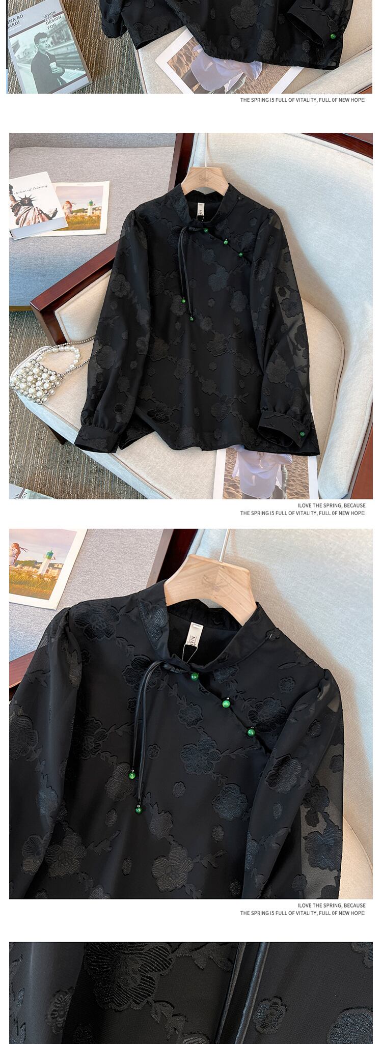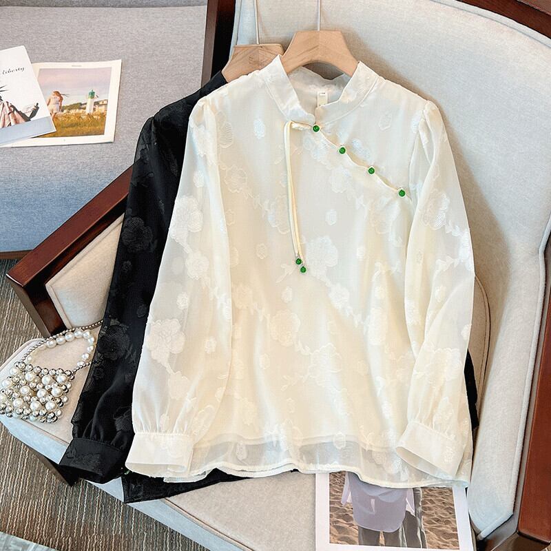プラスサイズの婦人服 2023 脂肪姉妹春の新しいレトロなファッション中国風のジャカードデザインのシフォンシャツトップ 大きめサイズ スプリング 春物 8884145851007927
