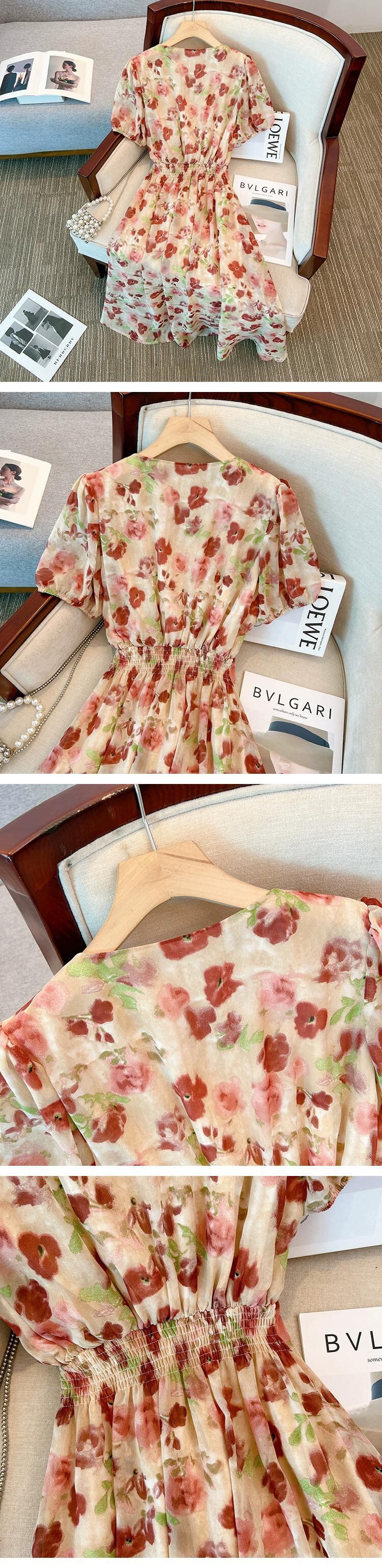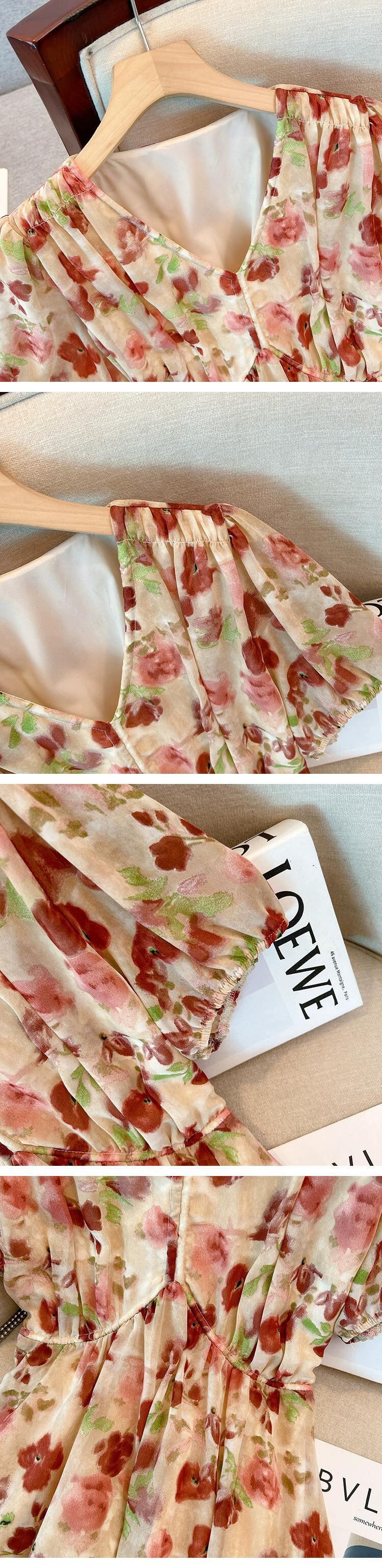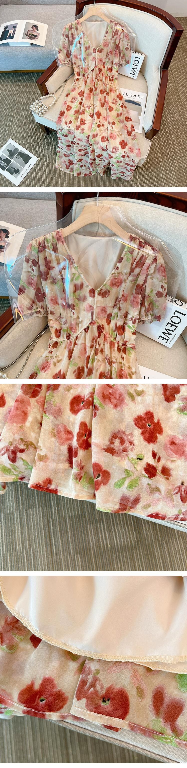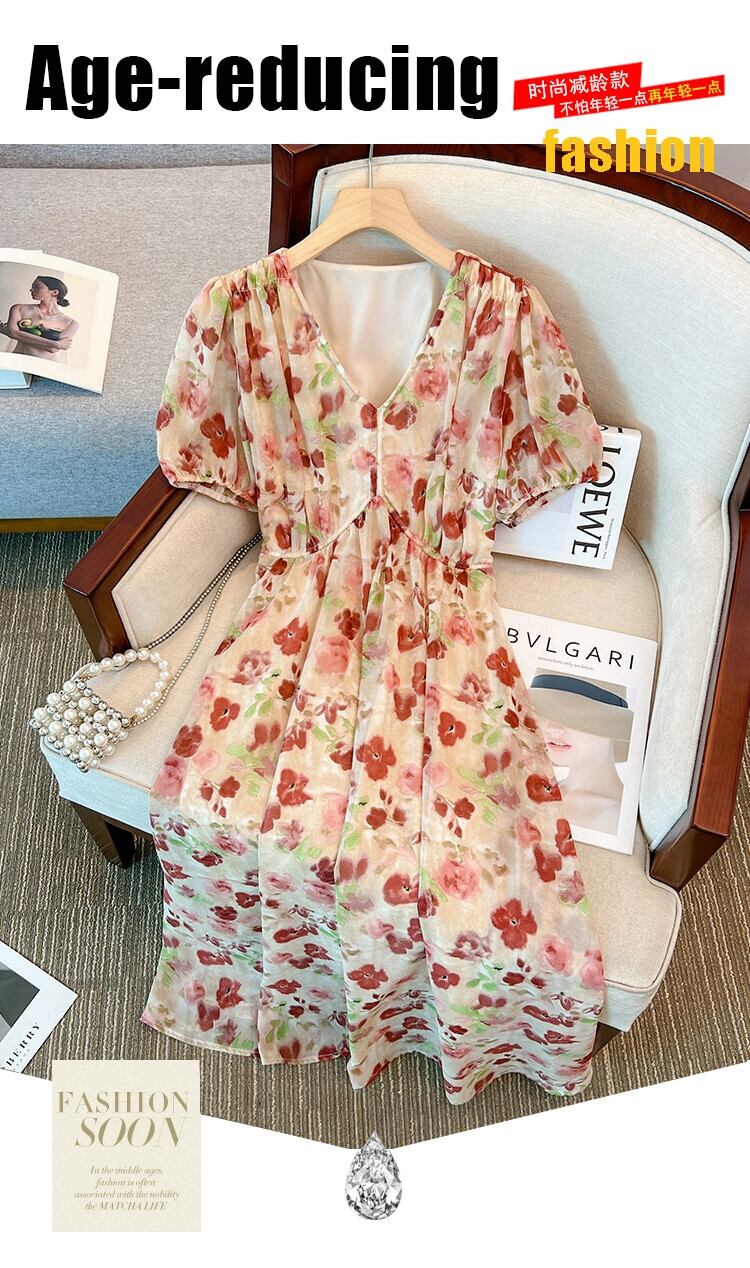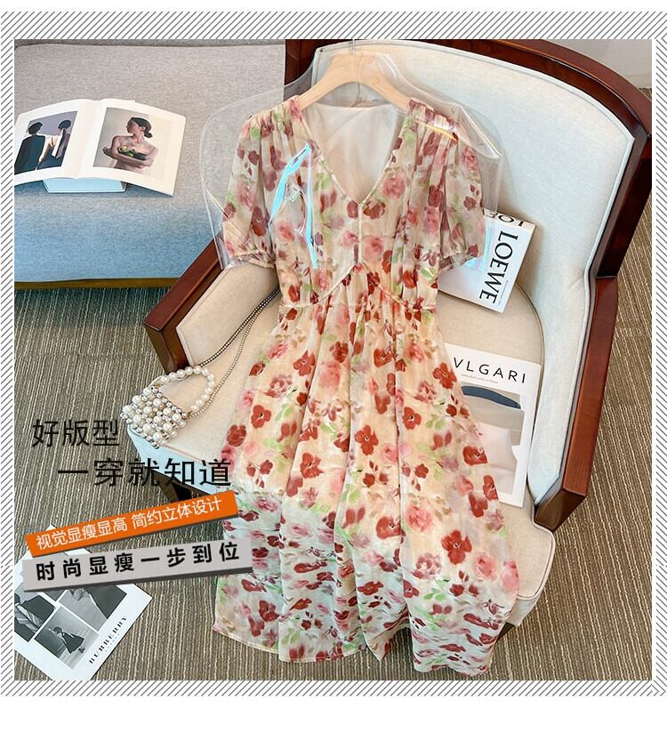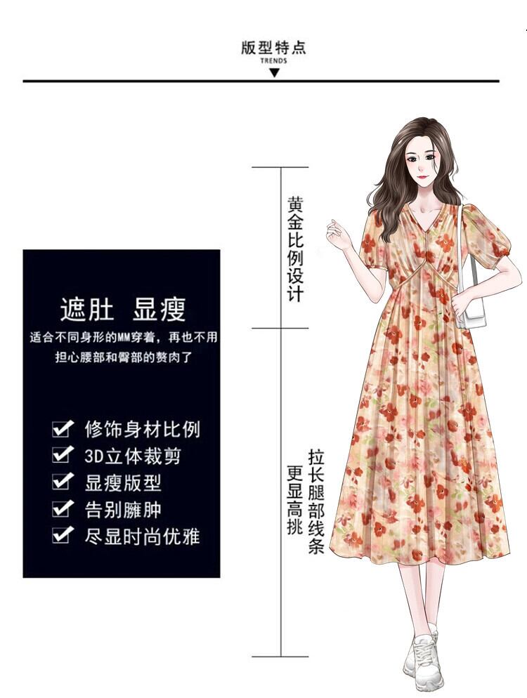 プラスサイズの婦人服脂肪姉妹夏の新しい痩身フランスの気質ロングスカート花柄ドレス脂肪ミリメートルベリーカバースカート 大きめサイズ サマー 夏物 8884176739723162