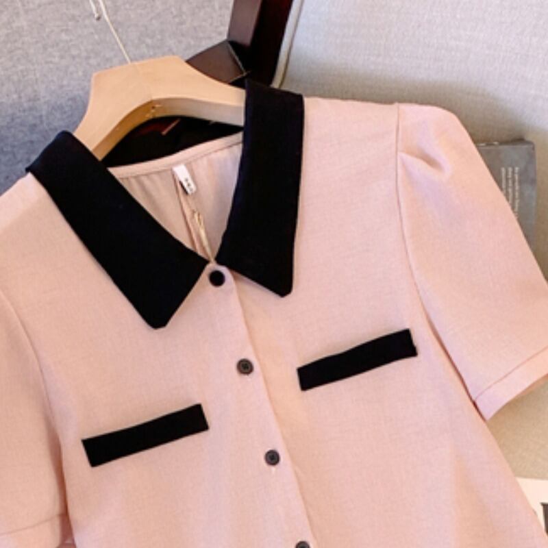 プラスサイズの婦人服 2023 夏のドレス脂肪姉妹ポロ襟薄いドレスフランスの気質ニッチ脂肪 mm スカート 大きめサイズ サマー 夏物 8884128051404687