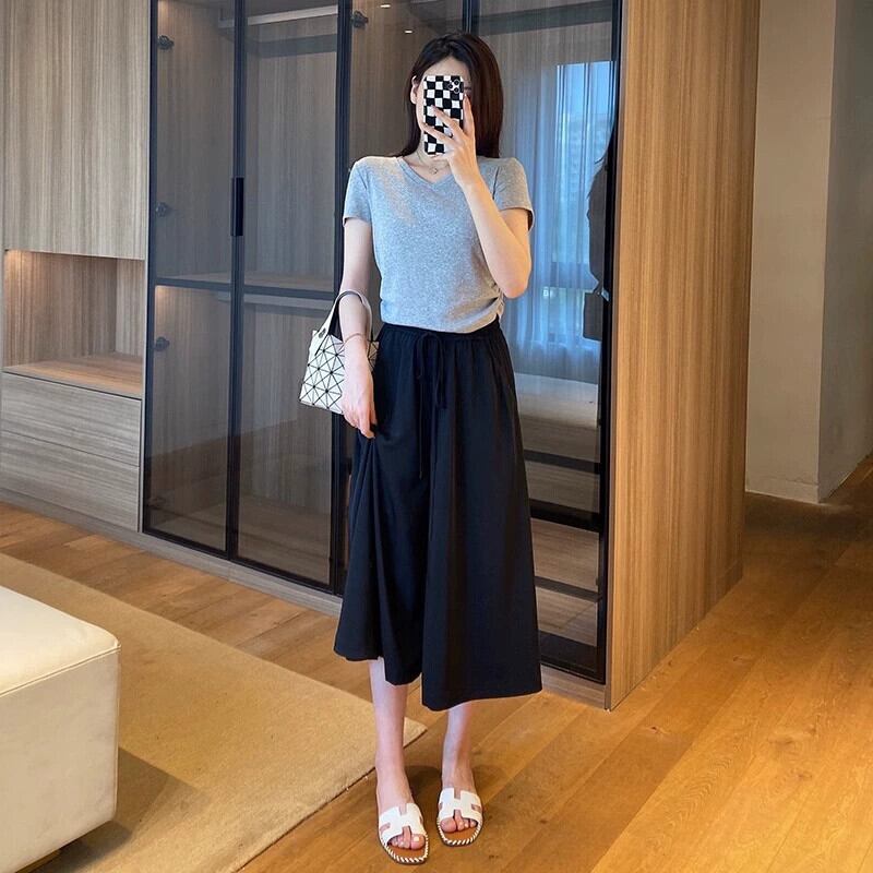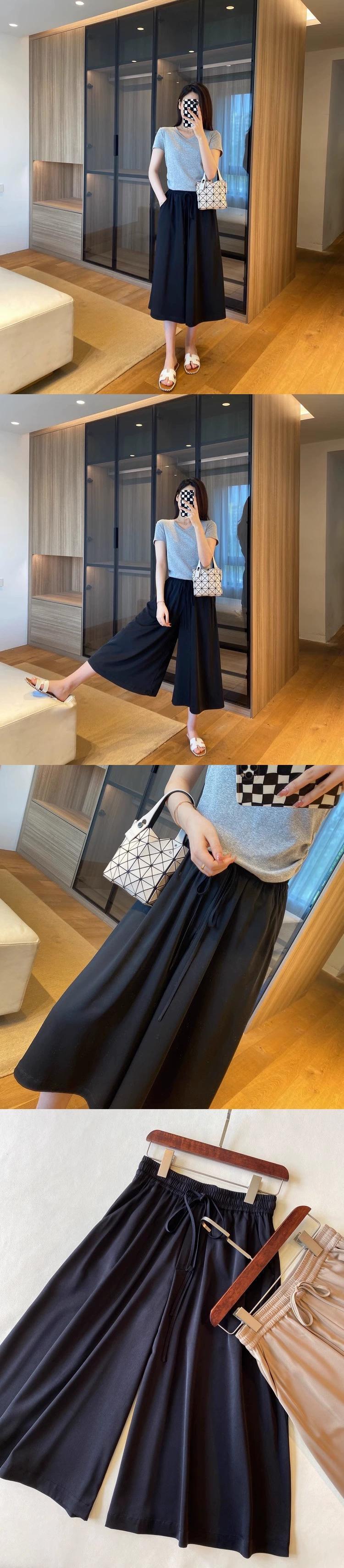 プラスサイズの婦人服 2023 ファットシスター夏の新しいカジュアルワイドレッグパンツ薄いセクションハイウエストルーズスリムドレープカプリパンツ ハイウェスト 大きめサイズ サマー 夏物 8884151620016210