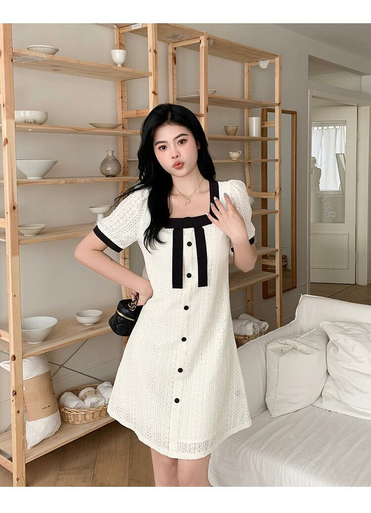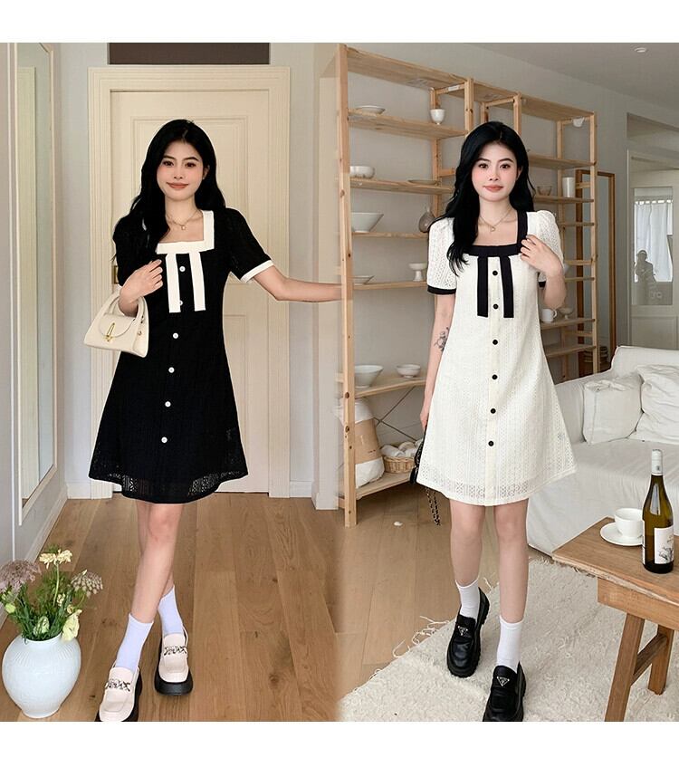プラスサイズの婦人服 2023 流行の夏の新しい脂肪姉妹フランス西洋スタイルのファッションスカート年齢削減スクエアカラーレースドレス 大きめサイズ サマー 夏物 スクウェア 8884163847327831